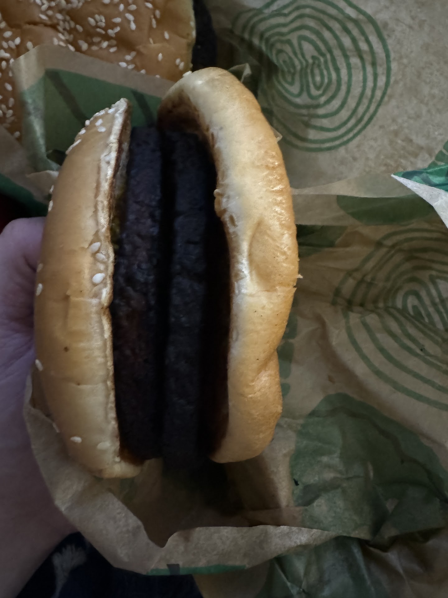 Read moreThe worst of the worst. Never had a store mess up more orders or be so unhelpful when theyâre wrong. Any time you order using the app, which they encourage, it gets sent to the store wrong. When you complain, they wonât ever refund you, instead offering reward points and coupons. Eventually enough is enough when they send you 4 burnt-to-a-crisp patties on your two burgers, and two overly sweetened âunsweetenedâ iced teas. So I asked for a refund. I was told that because of the number of times this store has screwed up my order, they refuse to refund or even offer a coupon. Needless to say I gave them too many chances. Iâm still arguing with support because it cost $40 for delivery for 2 people and Iâm asking for a refund only on a couple items, theyâre still refusing! Check out that picture - pitch black! And customer service says I donât deserve anything because theyâve done enough (a couple coupons and a handful or reward points - theyâve given me sweet tea when I ordered unsweetened I think 4 times now this year).