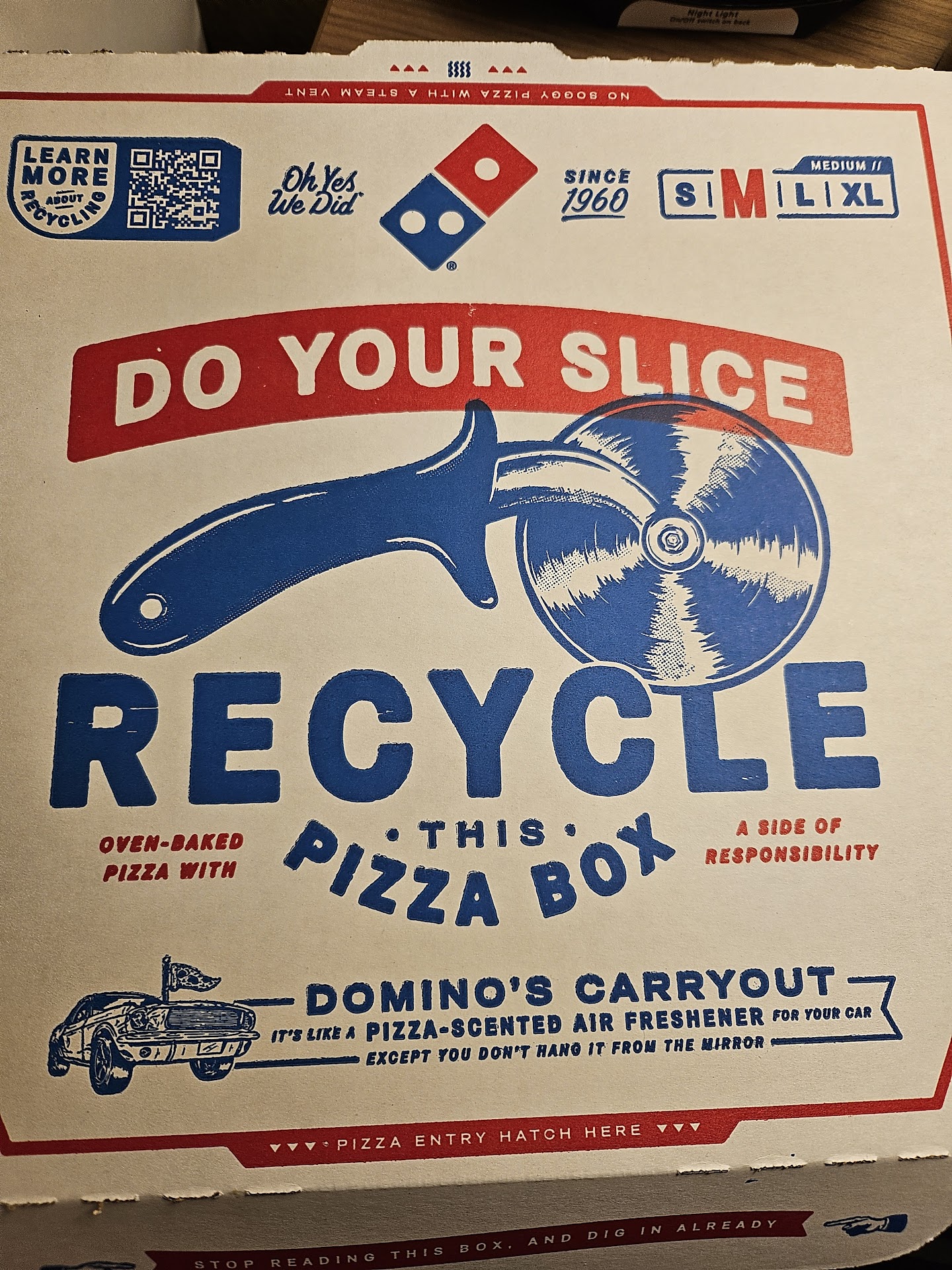 Ā Ā Ā Read moreTheir chicken wings are by far the nastiest I've ever tasted. There is absolutely no crispiness like it says there is. Everything was like rubber. The food quality from Domino's tonight was unbelievably gross. I don't care if you only have one person working and one person delivering. If you cannot serve food, that's tasting good then shut down. The loaded tater tots were overcooked but at least they...