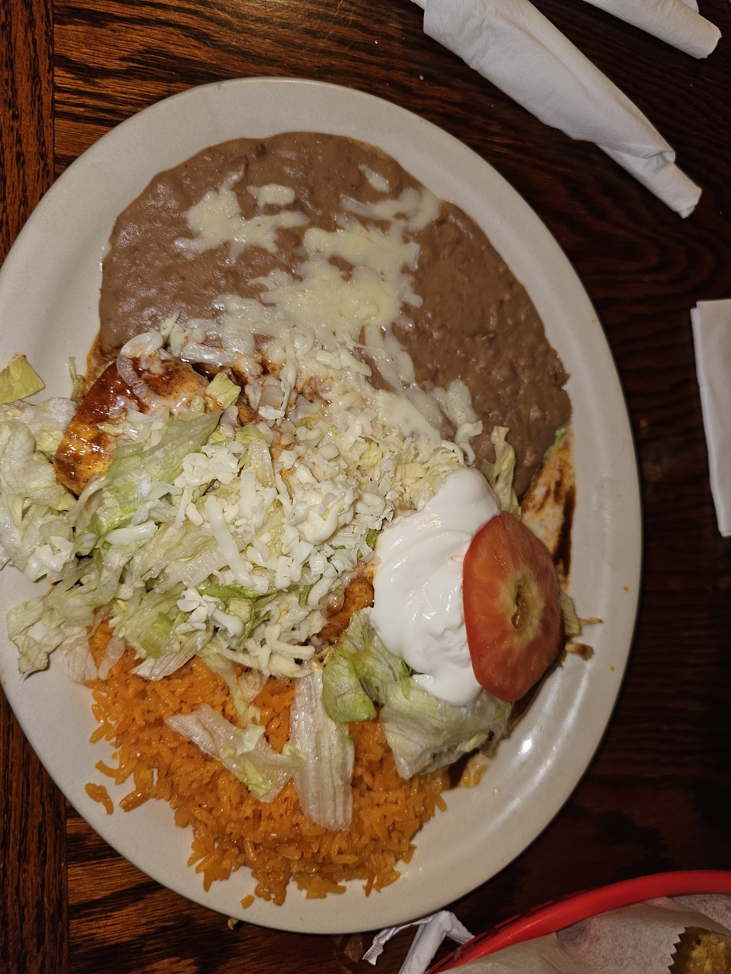 Read moreTo start with the service was atrocious, we walked in they sat us down and waited almost 15 minutes for our waiter to come back around after bringing drinks to ask what we wanted to order. The waiter was less than helpful especially when we had menu questions, it's almost like we were idiots for not understanding a foreign menu. Finally our order is in he didn't read it back to us, we had a couple special requests, just to see if they were accommodating... that was our first mistake. We ordered queso to go with the chips and salsa that didn't come until our entrees came and had a film over the top of it like it had been sitting since we ordered it. Our hostess brought our food mumbled a few words and literally threw our plates on the table not even to the right people. Our drinks were empty most of the service and we got checked on 1 time in the matter of 45 minutes. Now the food was excellent we got 3 renditions of burritos, various shapes and sizes, impeccable. The food was excellent, homemade, and authentic. I'll never go back in there for a sit down service because that was a joke but I will...