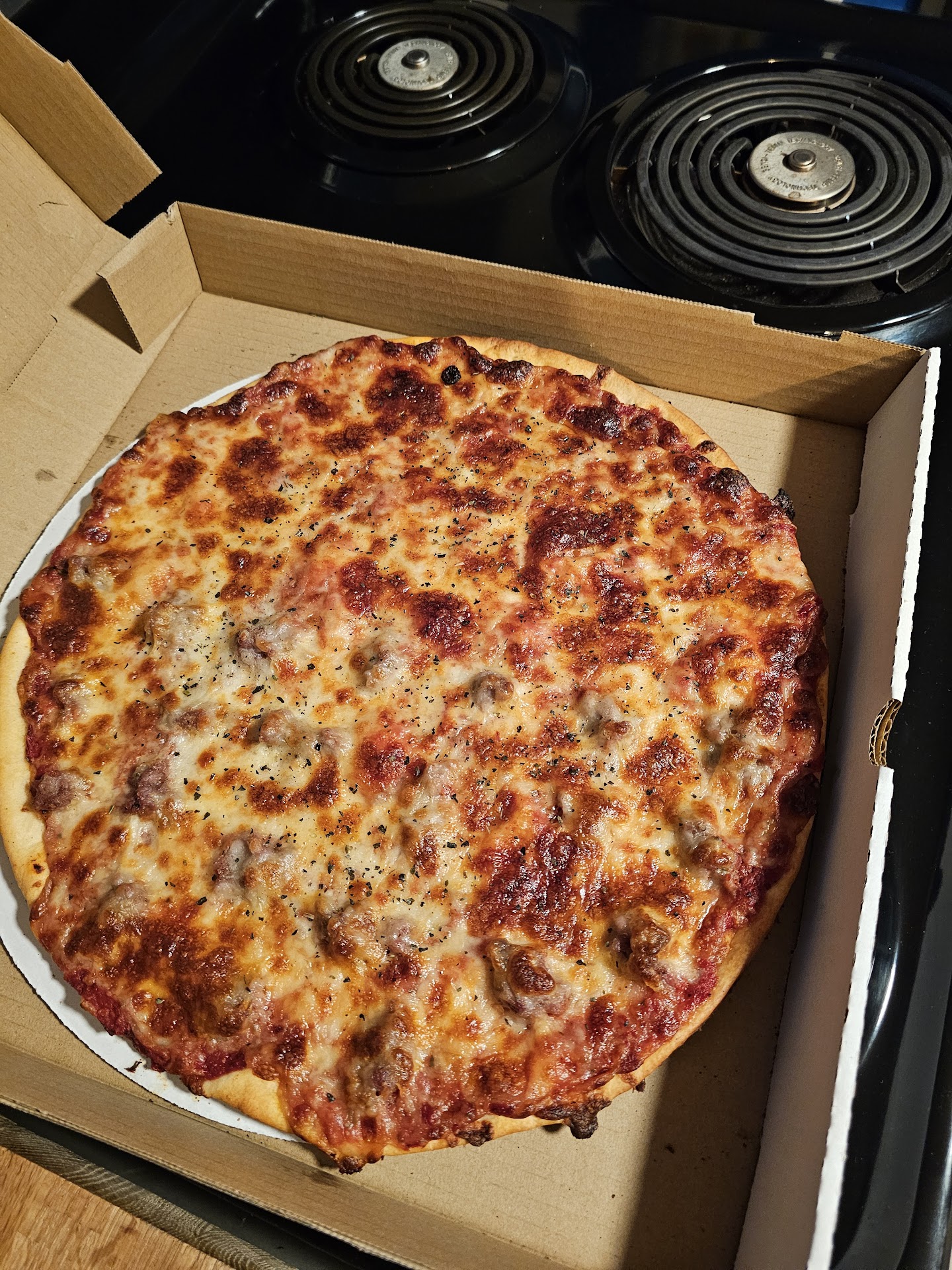 Read moreFire 🔥 🔥🔥🔥🔥 Authentic chicago tavern style pizza. Fresh raw sausage put on the pizza, sauce was amazing with a buttery crunchy/ crispy crust. And the prices are insanely cheap. 2- 14" thin crust (one sausage one half sausage half cheese) and a 10" stuffed cheese plus 2 pepsi's was only $48. I'll definitely be back and highly, highly, highly recommend this place over villa nova and any other pizza place I've tried in Michigan or Indiana. 100% chicago pizza. This is coming from an Italian who was born and raised in Chicago, worked in quite a few pizza places out there, favorite food is pizza(kind of a pizza snob) And I make my own at home, until now. I'll be going here a lot.