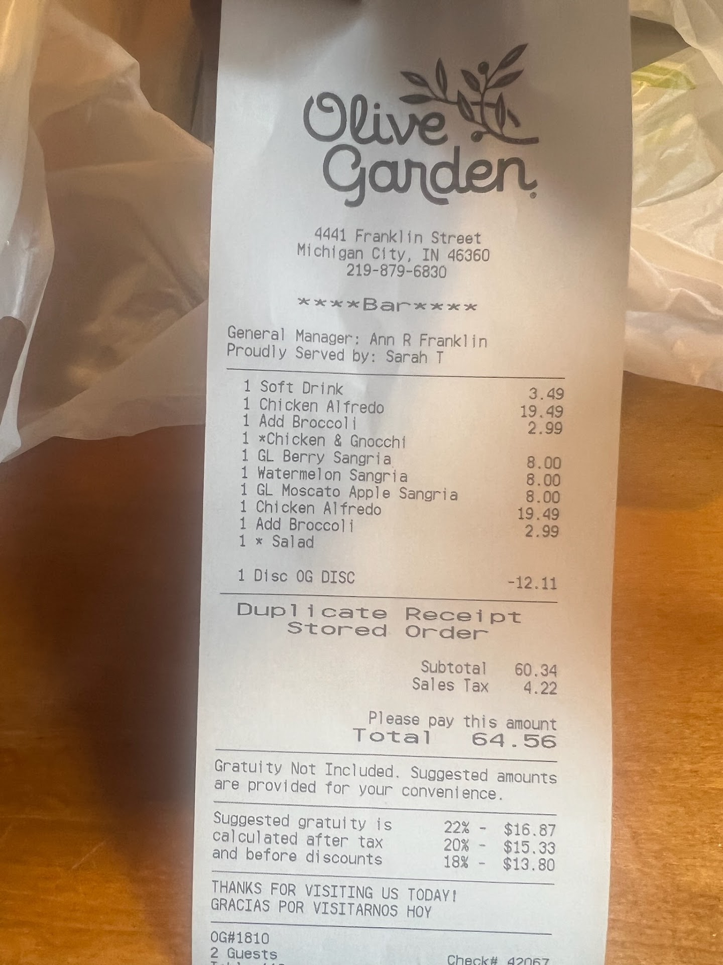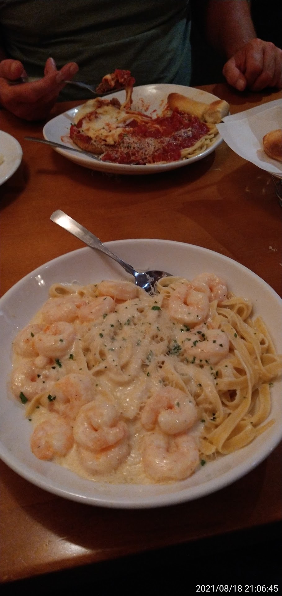 Read moreWith jobs open at nearly every resturaunt, good service has been hard to find,but I was pleasantly surprised tonight. We were seated immediately upon walking in and not being regulars to this establishment ,our decisions did not come easy upon reviewing the menus. . Our server Lexi Muffett suggested an appetizer that was out of this world and partnered up with the salad as if they were made to go together. It was refreshing to have a server who was fun to interact with and seemed genuinely authentic. We joked about the Soup or salad, and when the salad came to the table, my significant other said ,"Now that is a Super Salad...where is hers?" She enjoyed our sense of humor, acknowledged it, and responded with a humorous quip. She was on top of filling our drinks in a timely manner without seeming overbearing. It was truly unexpected, enjoyable and refreshing! Her authenticity was one of sincerity and joy for her job despite her long hours. After the salad our entrees arrived freshly sculpted into deliciousness. The shrimp alfredo had about 20 shrimp on it and the sauce was the perfectly creamy, not runny or too thick, just perfect. The new steak parmesan smothered with mozzarella was an interesting switch from the chicken to the beef. With a side of spaghetti, the combination was more than filling as we both took enough leftovers home for another meal. I love enjoying the conversations that take place at restaurants, but really was impressed with the wonderful personality and an impressionable passion for her desire to serve others with a genuine honesty for the integrity she holds for what she does. Finding out she works at a law firm as well adds to her ethical behavior which added to our whole dinner experience. The food was great, but having a server like her, adds that special secret spice that makes the food phenomenal, and the overall experience a pleasure. I actually look forward to going back there and will be sure to request Lexi as my server. Thanks for the wonderful...
