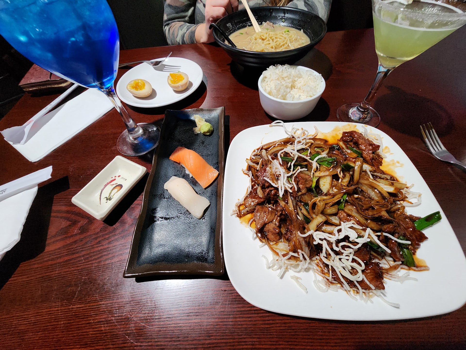 Read moreWe came on vacation and ate here a total of 5 times. The first time we ordered only appetizers (and in my mom’s case, drinks). Day 1: I had the Crab Rangoon, the Crispy Calamari, the Miso Soup, and The Dragon sushi roll. Everything was amazing; I had never had crab rangoons or eel before, and I found it to be delicious. The Calamari was not my favorite, to be honest, but that is a personal matter: still, the calamari was good. The miso soup, unlike any I have eaten before, includes small squares of boiled egg whites (delicious!). Day 2: I once again ordered the Dragon Sushi Roll, the Crab Rangoons, and the Miso Soup. For my main course, I ordered the seasame chicken (my mom ordered the Orange chicken). The plates were large and both came with broccoli and white rice. Everything was delicious: even what I took home and reheated in the microwave. Day 3: still ordered the Rangoons, the sushi roll, and the miso soup. I ordered their Chashu Ramen. Delicious noodles with pork, bean sprouts, a boiled egg, and the best broth I have ever had. Day 4: rangoons, dragon sushi, and miso soup with an order of Seafood Panfried Noodle. I am not a fan of egg noodles but I tried it anyways. It was delicious, although a bit bland. I added some duck sauce and the taste was very much improved. Day 5: rangoons, sushi, and miso soup. Once again, I ordered the Chashu Ramen bowl. The server was very nice and friendly ( we had the same person all 5 days). The atmosphere was very inviting: not very loud pop music, sufficient lighting (nothing too bright but not too dark), beautiful decorations, and some Chinese geographical history on the walls. The place was very clean, including the plates...
