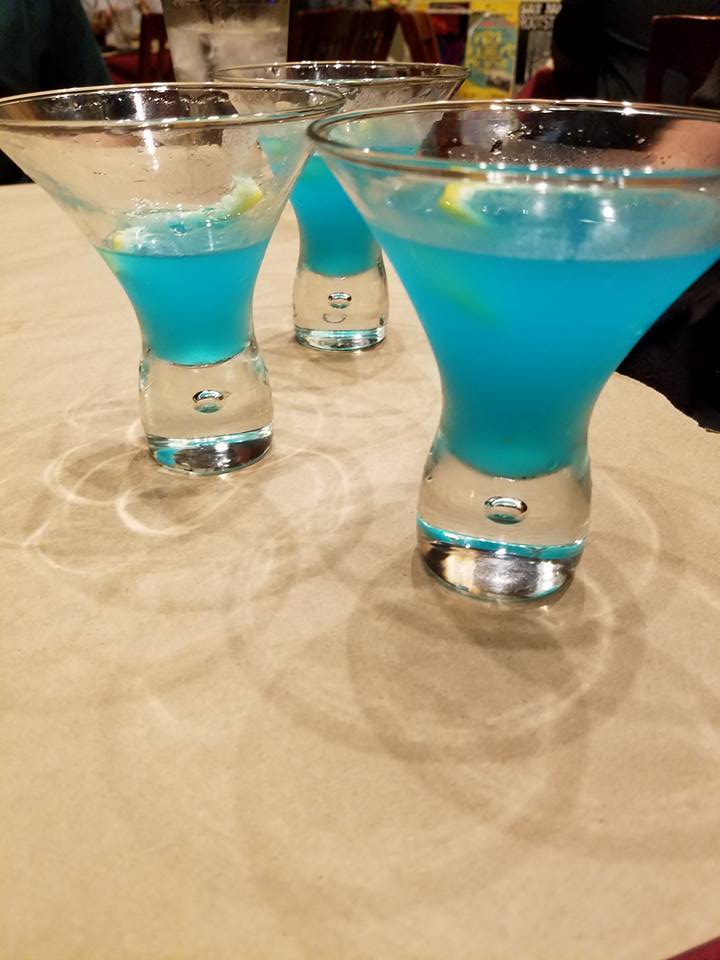 We were not disappointed when our beverages arrived. They were bright blue on the waitress’s tray. As she stopped to drop off beers at a nearby table our party’s thirst increased as she as she accurately described their origin to the inquiring table. Points A, B, and C were definitely intact. What was in it? You’ll have to go in and have one for yourself. We enjoyed a few rounds before switching to the Don’t Panic when our food began to arrive.