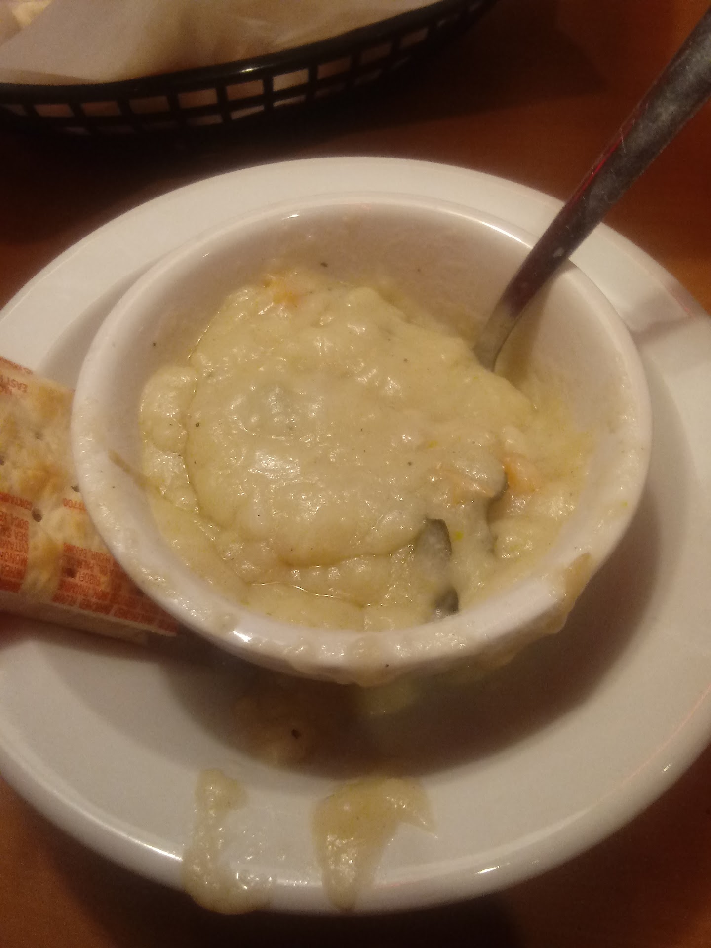 Read moreOverall a clean restaurant. Our waiter was very nice and overall prompt. There's the one star. Upon arrival the hostess staff was taking to someone in the kitchen and a table they just seated. The female in the kitchen hanging though the food staging window just couldn't seem to let it go, as it appeared to be interrupting her cell phone break. I ordered steak, which came with soup. The "soup" was supposed to be chicken dumpling. What arrived smelled like there might be something chicken in there. My spoon sat firmly on the top....soup isn't supposed to be firm, is it? First time in my life I've ever been served soup so thick, you could've poured it onto a plate, and cut it with a fork and knife. I had been on the road for HOURS before I arrived here, so, I ate this..... soup? Next, my steak arrived. Steak was actually cooked well, so, kudos there. Not sure if in an area of the kitchen they were also preparing salt licks for deer, because if you put this thing on a stick and hung it from a tree, deer would flock to this from hundreds of miles away. I'm not sure if the recipe calls for a 1 ounce of seasoning per 4 ounces of steak, but this thing was literally grainy from all of the salt, pepper, etc. A few bites in and my mouth was literally burning from the massive amounts of salt, pepper, and whatever else. Not sure where the cook staff received training, but I wouldn't serve this stuff to my enemy being held in a P.O.W. camp. I'll never stop at a Texas...