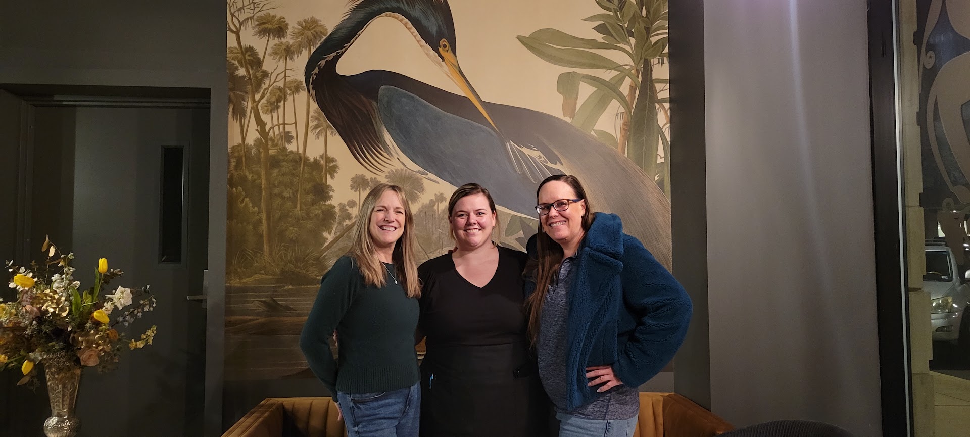 Wow—what an incredible surprise! My friend and I stumbled upon Heron Bistro last night, and it instantly became a new favorite. From the moment we stepped in, we were struck by the ambiance: dark, moody, and romantic, with vintage light fixtures lining the bar, a breathtaking beach glass installation at the back, and captivating murals throughout the space.