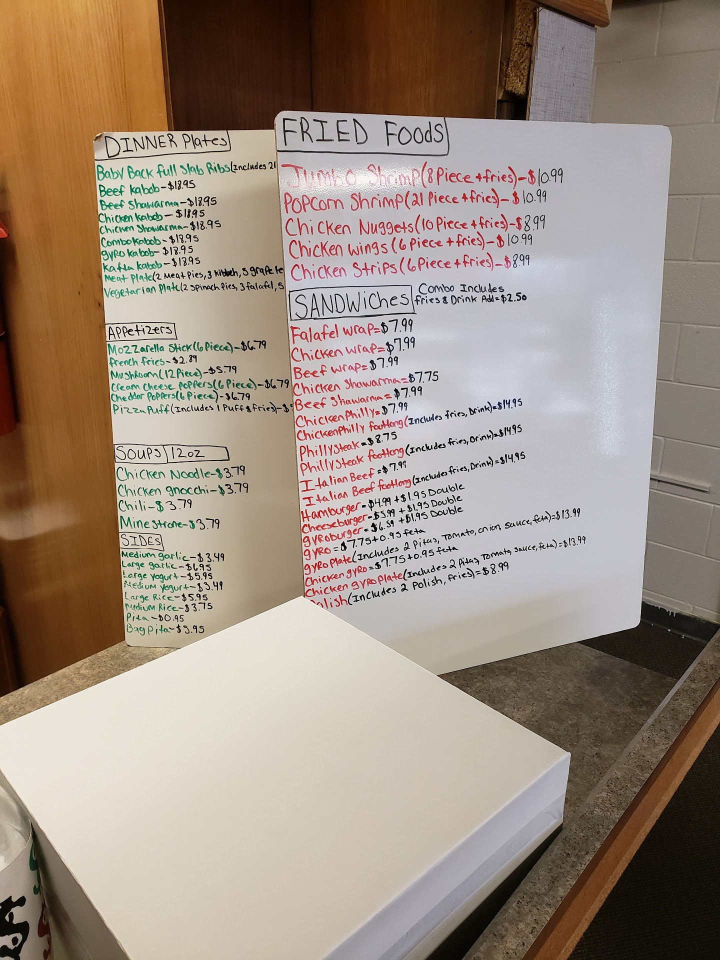 The inside is very disappointing as well, no menus and no pictures. They have 2 handwritten lists in a very small print and misleading terms. No greeting nor any welcoming gesture from the person behind the counter, as if our business wasn’t valued nor appreciated…a bother even!!
