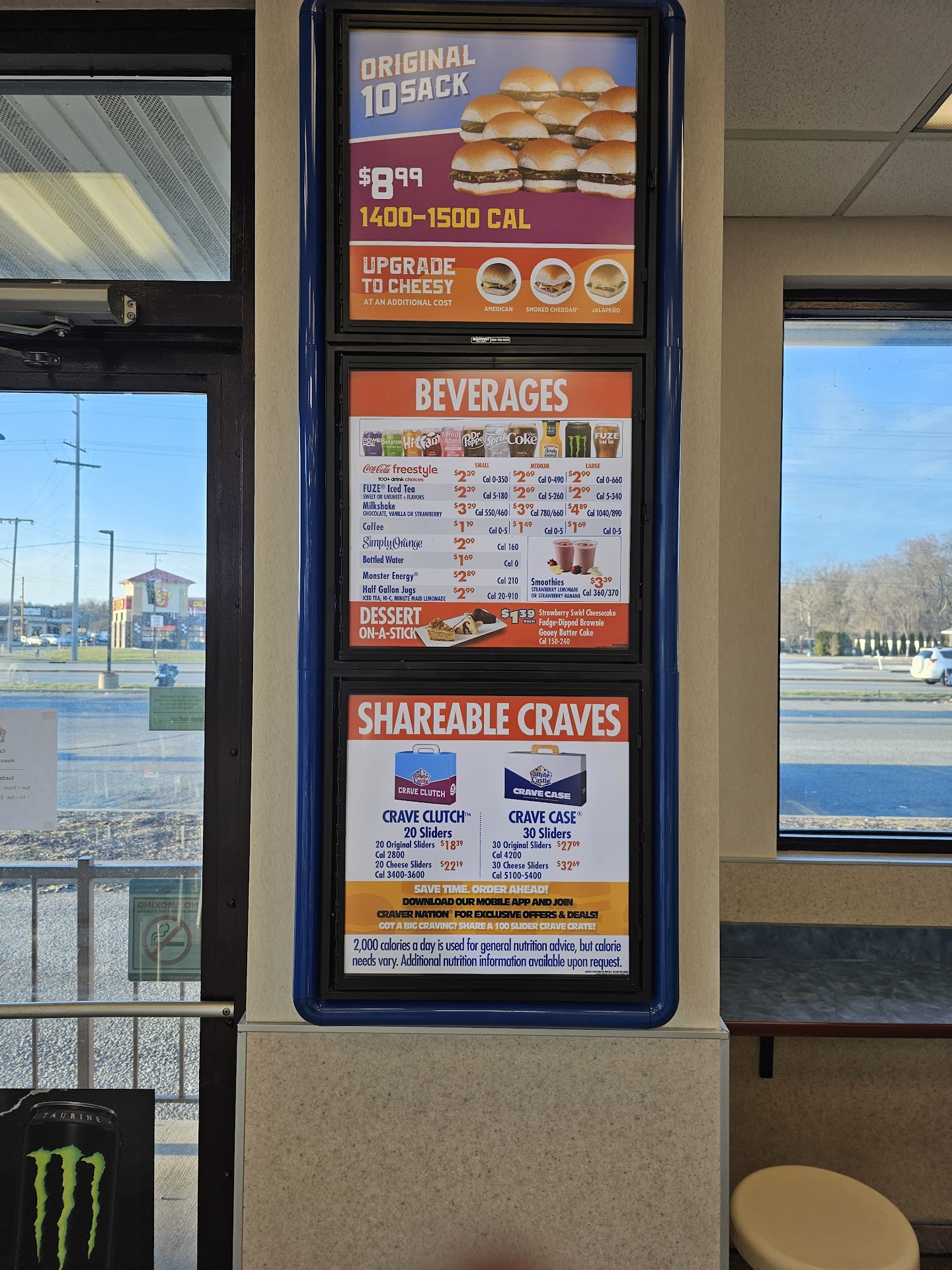 Read moreFirst off, it's white castle. Don't keep high expectations when coming here. Once you get past that, you'll definitely enjoy your visit. We visited on the 17th. We went inside, and was greeted by the prettiest lady (Probably young 30's) I've ever seen! She was black, big deal, and through conversation, she had 3 kids. Super super nice & friendly! But, I know women get hit on constantly when working in service, so I didn't say anything. We waited a few minutes for our order, and it was made exactly as requested. Most of the tables in the dining room was dirty, but I think I was distracted by the lady who took our order. lol I didn't stare though, that's rude. We enjoyed our food, and headed out. It does take more than a pretty individual to make a place, but the food was hot, fresh, and made exactly how we wanted it. The friendly service was a added bonus.