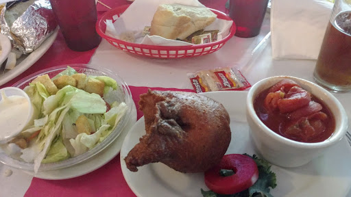 The lunch entrée was another favorite, the crab fluff. Basically it is a crab cake dipped in batter and fried. Crisp outside, so moist and creamy inside that the tartar sauce accompanying it is hardly needed. The choice of side dishes is limited, but the quintessential fries and cole slaw (fresh made) are available, as well as house made macaroni and potato salad and a couple of hot vegetables. My fries were hot and well cooked and my house salad of lettuce, tomato, onion, olives and croutons was excellent. The ranch dressing served on the side was above average. A dessert of chocolate mousse cake with whipped cream was fresh and will please any chocolate lover. Not overly sweet, it was the perfect close to a very satisfying meal.