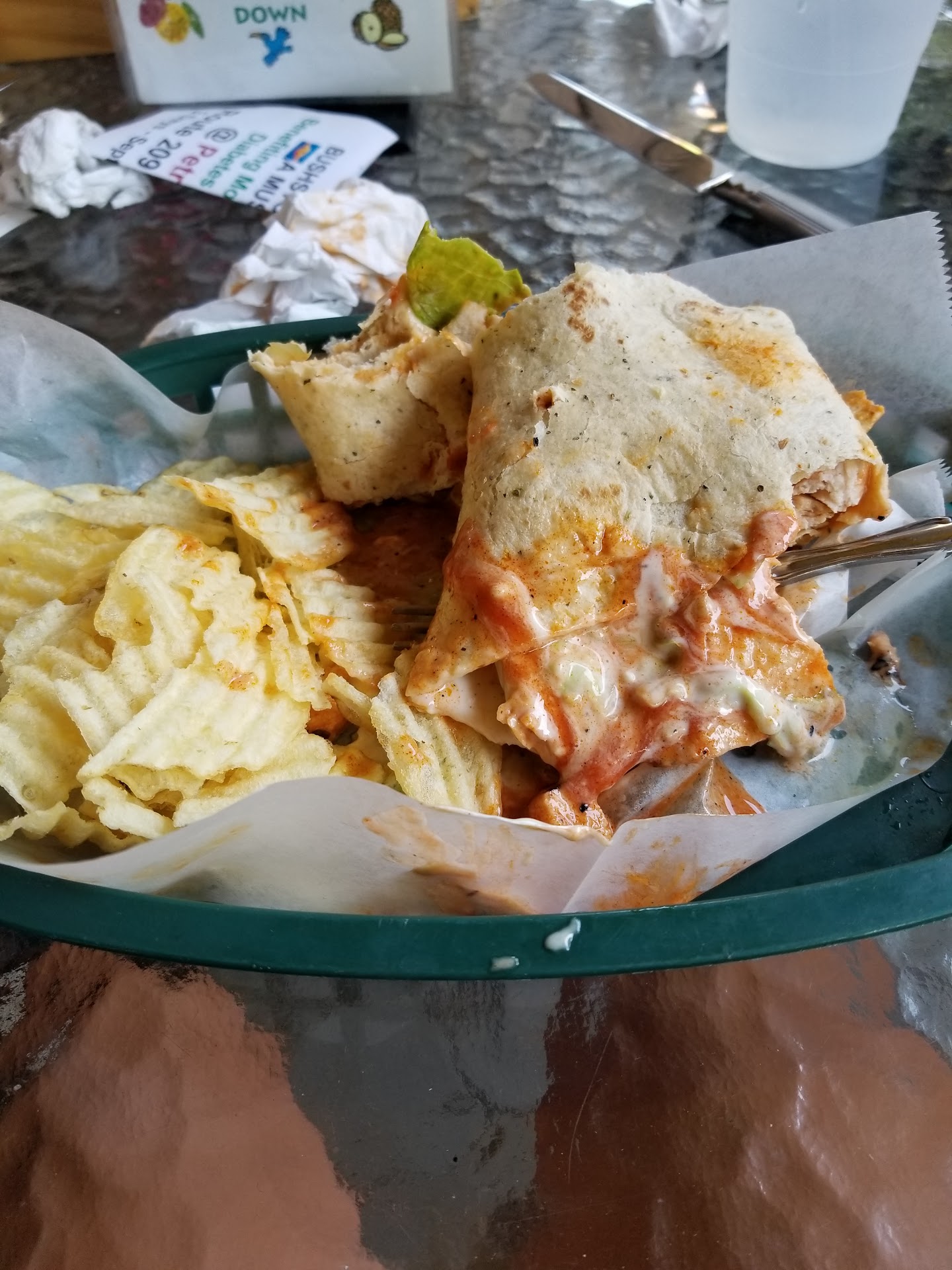 Read moreIf no stars was an option that would be ideal. From the time to walking in to being sat I knew this was going to be horrible from the start. The greeter/hostess/waitress was snappy from the start. So to you sweetheart, you work in the industry eithier start to love your job or leave it because this job isn't for the hot headed. We were served a basket of end of the bag broken chips as soon as we sat. Fantastic, you are located in the heart of hiking country do not serve end of the bag anything to your guests. One patron at my table ordered 2 different waters both to our disgust had a worm floating in it. I've worked in this industry for 14 years from family owned, chain, dive bars to night clubs. I'm a bartender and server I get it this stuff happens, but as well if it happens once I would inspect the 2nd glass to most def not have a repeat. Fail. It took approx. 45 mins for 2 burgers and a grilled chicken wrap as which I attached a photo of that soup filled pita with soggy lettuce not even the homeless would consume. 3.00 upcharg for French fries, great no problem paying that just make it a hefty portion, not 10. This place has so much potential but in all honesty you need workers that know what they're doing and actually love their job. You need a ton of upgrades inside and out because I'm not even getting into your inhouse that functions as an outhouse bathroom. Your food is mediocre with little to no taste. Get a real chef and not a line cook. Your drink menu needs to be updated and actually delicious. I had the bourbon palmer, disgusting. You want to hand craft cocktails by all means I'll help you because that sad excuse of expired tea and watered down lemonade please just dont. You need bar rescue asap. You're at the end of your season you should have all these bugs worked out by now but you dont. This is my second time I ate here and I'll never be back again unless it changes owners and gets a lift. You want people to pay and come to your diabetes benefit, my God I cant even imagine if you actually seat 10 tables, your staff and kitchen is...