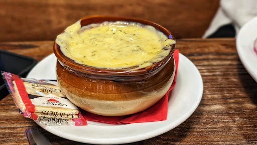 The French Onion soup was delicious. Lots of cheese and tons of onions.