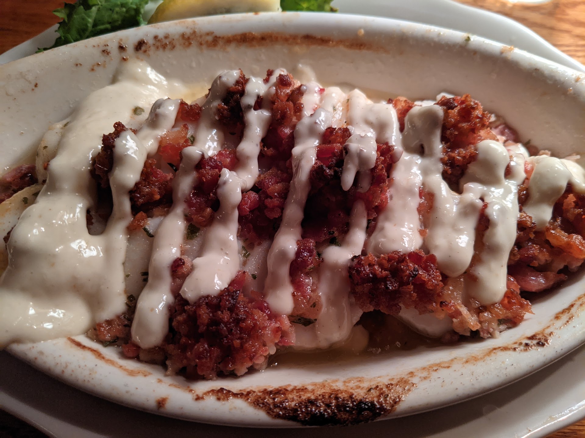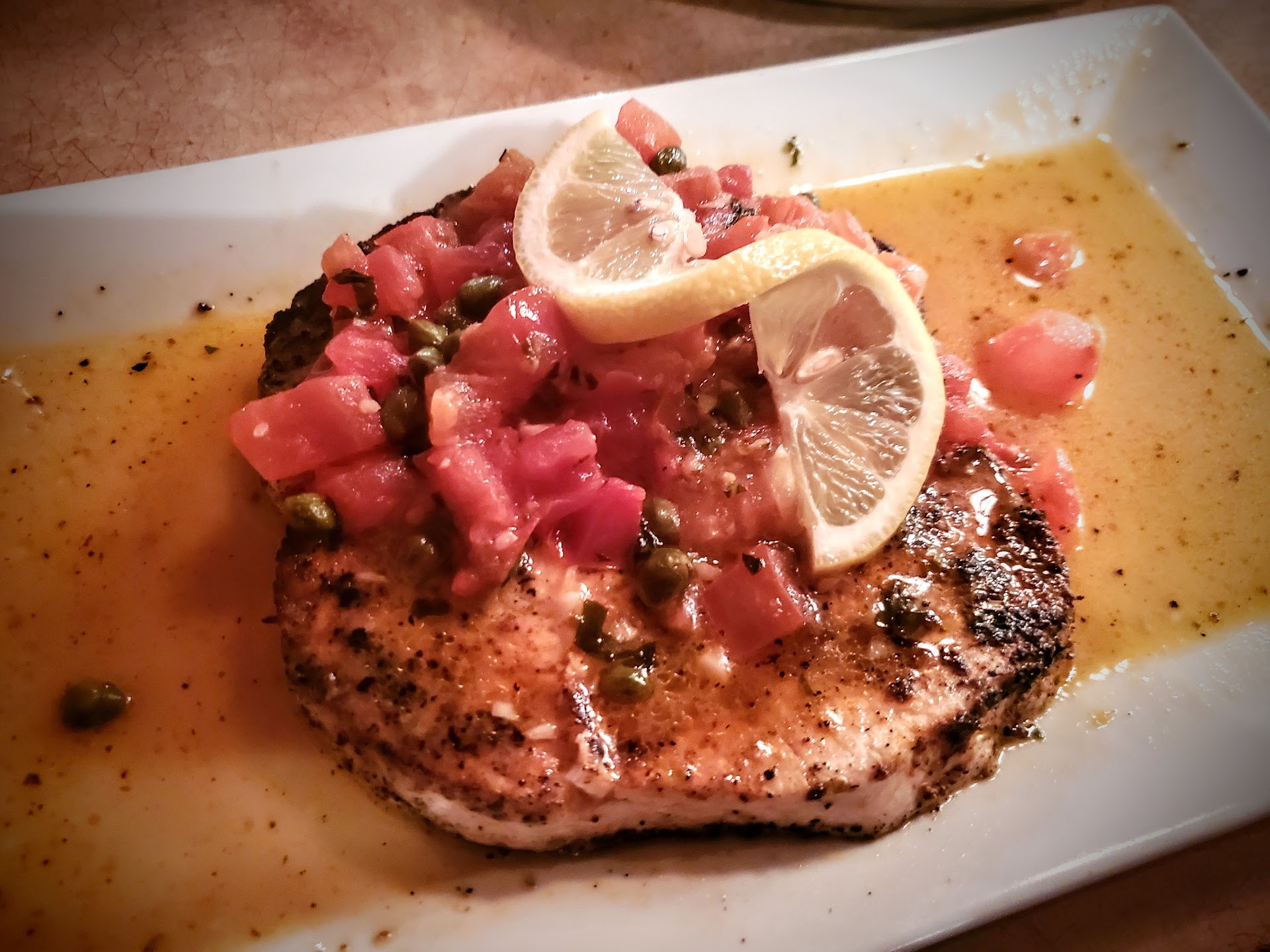 When picking a main I made sure to stick with something that was locally sourced (for freshness) and I was not let down. I had the sword and it was excellent. It tasted fresh, was cooked perfectly and again the sauce was amazing. My GF ended up dipping her food into my sauce so that says something! Everyone who picked an entree that was sourced/caught locally was impressed. I enjoyed my beer and everything I ordered I would get again.