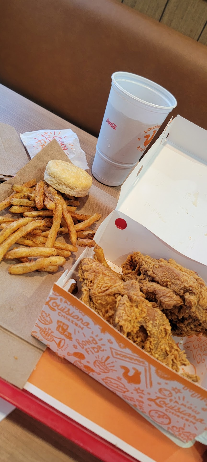 Read moreUpon arriving at Popeyes there was only six other people who had already been served. The cashier took my order for two but when asked if I could have some sauce she was visibly annoyed. I told her what kind I wanted for the one order and she quickly grabbed two and slammed them into the paper bag. At that point I didn't want to ask for the kind of sauce I wanted. We took our seats. The tables were not cleaned. I tried the coleslaw and had to return it because it was tainted. The Mac and cheese tasted like it was made with a powdered cheese that clumped up. The chicken could not have been fried in the right temp ,it was grease laden and pink on the inside. Mashed potoates of course were instant. The biscuit was perfectly delicious and the only edible part of the meal. $27.00 is alot to pay for two biscuts. I don't know who was in charge of the lemonade mixing from the machine but the mix was wrong and very powdery tasting.