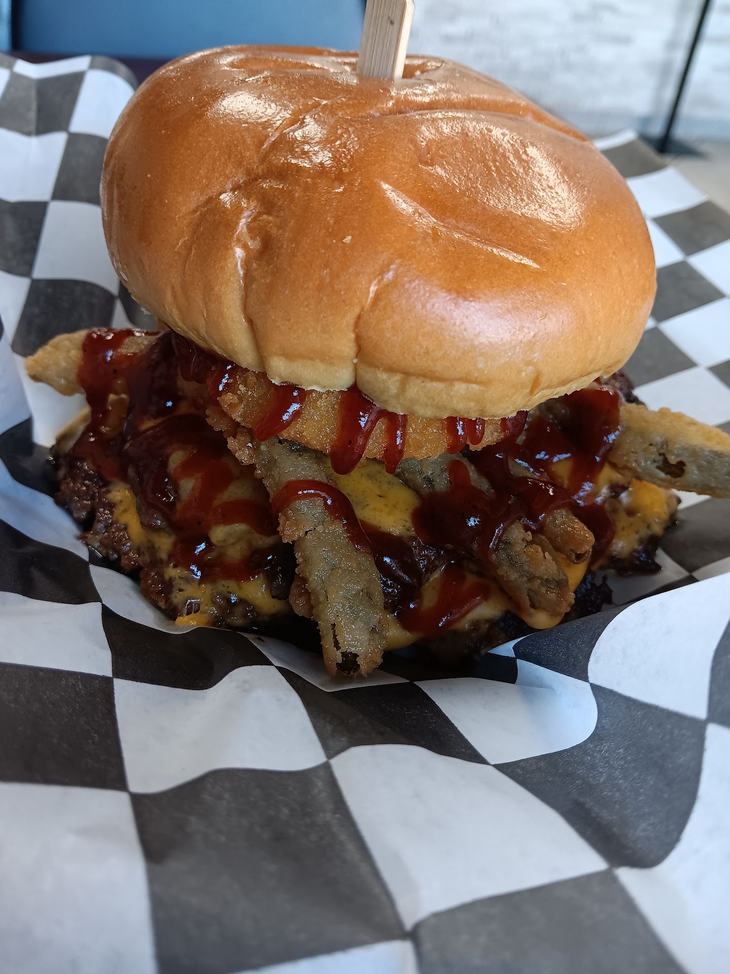 Read moreThis cowboy burger was all that! It had 2 patties, cheddar cheese, onion ring, fried pickles, and BBQ sauce. My only issue was immediately after I put in my order the person goes and grabs a hamburger bun and hoagie roll WITHOUT gloves after handling my transaction.