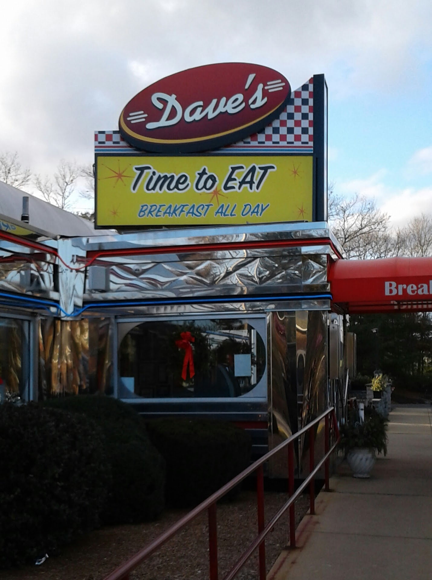 Read moreWe're from New Jersey, the diner capital of the world. These kinds of places dot the landscape back home, so our standards for diners are pretty high, you're not going to impress us with a nostalgic theme alone! With that being said, Dave's checks all the boxes, good food, reasonable prices, quick service and a friendly staff. The place was hopping on the Friday night we were in for dinner, and there was no outdoor seating available, but we were seated in a booth within about 5 minutes. Orders were taken quickly, and the food arrived soon thereafter. My oldest had a very good banana pancake which he polished off, while my youngest had a foot-long hot dog with chips. The wife had two eggs over easy with hash browns, which she wasn't terribly fond of (the potatoes weren't seasoned and were almost sweet. Not bad, just not what she is used to). I had the fried chicken at the waitress's suggestion. She did not steer me wrong. It was crispy on the outside without losing any of the moisture in the meat, perfectly done. The sides did not match the entree, however. The biscuit was a bit dry, the mashed potatoes were okay, and the cole slaw wasn't very good at all; dry and flavorless, almost like plain shredded cabbage. Still, all in all this was a very solid meal, and the price was certainly right. They also have root beer on draft, something I didn't come to realize until I was leaving. Would've loved to try it! If I find myself in the area again, I wouldn't hesitate to...