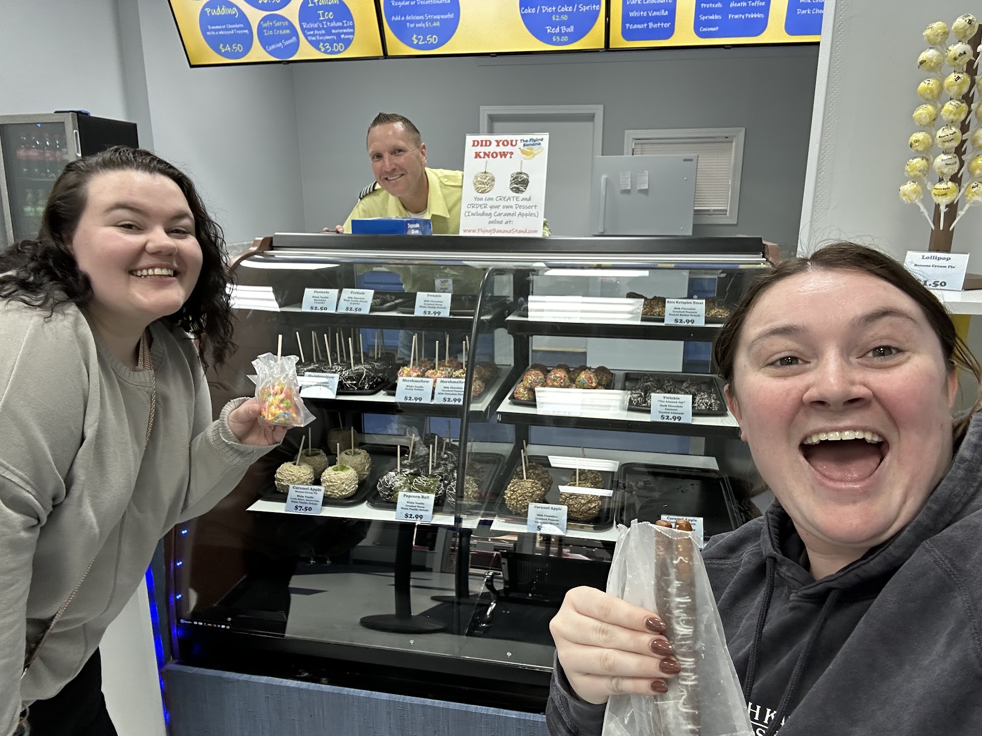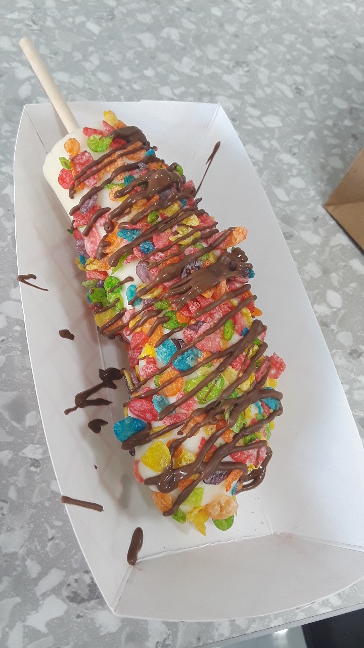 Read moreWhat an amazing experience. So happy to see this family business grow from a food trailer to a retail location. Such delicious desserts served up by the nicest staff around. Can’t wait to visit the Flying Banana again and try a different flight to a delicious dessert destination. I got the frozen banana with dark chocolate dip, Reese’s pieces and marshmallow...