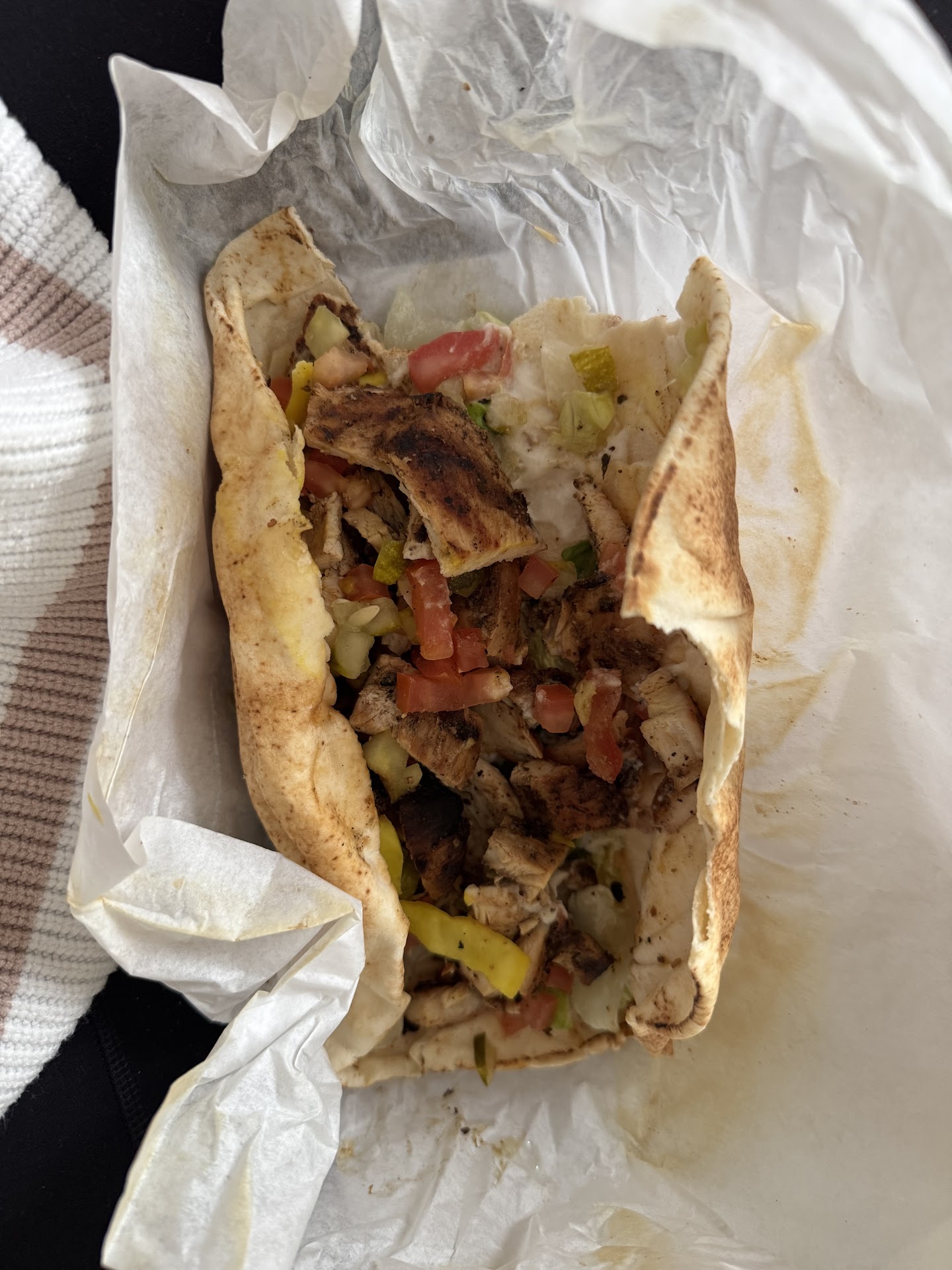 Ā Ā Ā Read moreI came here on a whim and so glad I did! I was greeted immediately by Theo. Theo had asked if I had been there before, I said no, and he told me about the menu. I knew I wanted a pita but was overwhelmed with the choices. Megan, who was cleaning up, was welcoming by offering a compliment to my hair! That wasnt even on the menu, haha. Collectively Theo, Megan, and Vincent made me feel confident that I had made the right choice for dinner. Theo basically curated my entire meal because I was indecisive. He even let me try some of the pickled cabbage that I had initially declined. So glad I tried it because it was delicious!! I got dark meat chicken, hummus, lettuce, tomatoes, pickled cabbage, and some other stuff on the wrap. (I should have asked what all was in it because it was wonderful!) I also got a side of hummus and chips as well. The chips are so good. They have flavor to them, not just a plain pita chip. The hummus is smooth and flavorful. The wrap was exactly what I was craving. I would absolutely go back. Food is great, employees are wonderful, and the store was very clean. Thank you to all three of the employees that greeted and served me tonight!! You did wonderful and it is so...