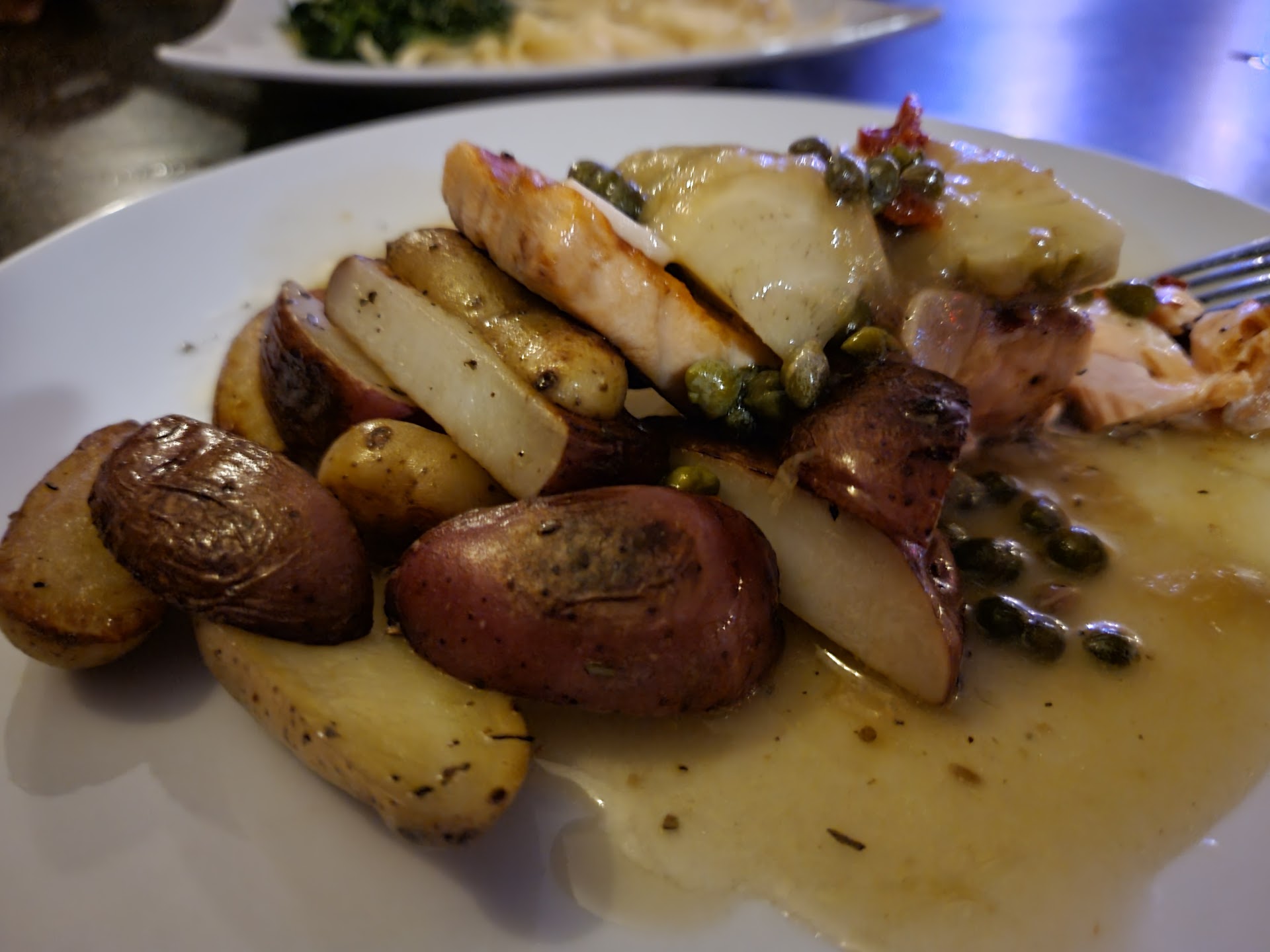 This restaurant is extremely small, and the low ceilings make it extremely noisy. I have been to the past 2 restautants at this location and they all suffered from the noise problem. Do not expect a quiet dinner unless the place is empty. Overall, I have to describe the dining experience as "odd." The drink specials were ok, but the selection of glassware for my drink just seemed wrong. My bourbon cocktail was served in a small brandy-snifter type glass. I was having a bourbon drink, not brandy. Also, it had more crushed ice than liquid, so I had to stir it constantly with the little straw. Less ice or more liquid please, and a different glass. Little things make a difference. If they had added a sprig of mint they basically would have had a mint julep. We sent the calamari appetizer back. It had the frozen then thawed taste about it, and it was super tough. The bacon scallop appetizer suffered from the same presentation problem as the bourbon cocktail - it was strange. There were 3 pieces I think, and one was sitting on top of a giant tomato. Why? It just seemed odd. The giant tomato was out of scale with the scallops. To be fair, the taste was good and the tomato itself was fresh. As to entrees, I had the fettuccine with mushrooms and steak tips. It was good, not great. I would give it a B. For dessert, we had the cheesecake with berries. It was just OK. I expected NY style cheesecake with berries, but this was more cake-like than cheesecake-like. I was told all desserts are made fresh in-house. Here is something that I did find terrific about this place - whoever wrote the menu made every dish sound delicious! I had a hard time deciding what to order because everything sounded good. How many times have you read a menu where nothing sounded good? On this menu, it all sounded good. I am considering trying this place again. Like I said, everything on the menu sounded great. Maybe it was an off night. For the price, I...