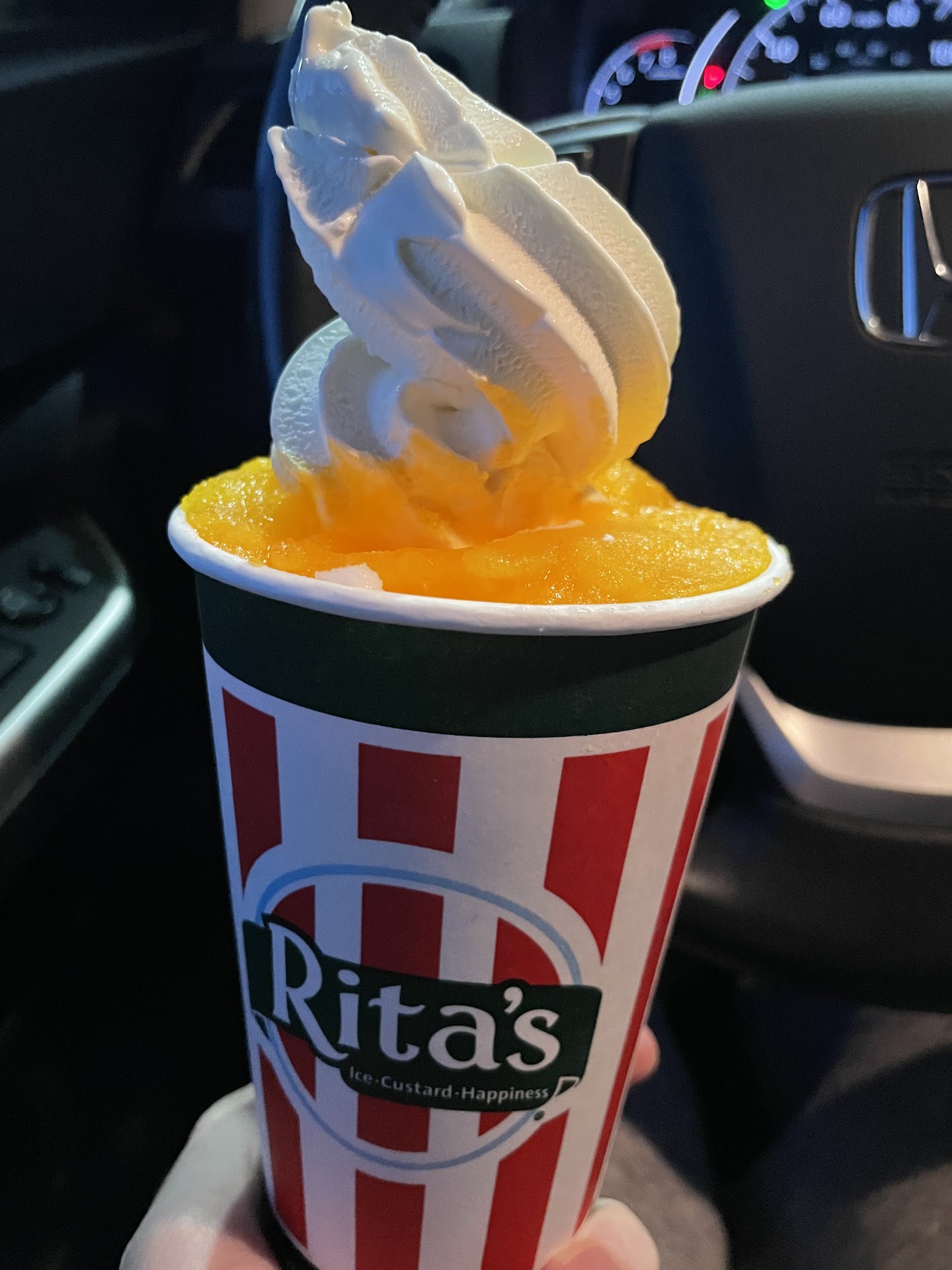Read moreApparently free Italian ices today but they do not have any signs that say that. In fact there was a hand written sign that said first day of spring there is a $2 up charge for custard - weird. Also the flavors were not good, no cream flavored ices. Seats up on half the store.