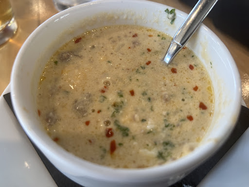 Let’s talk about the food. I was initially bummed they didn’t have a filet on the menu… but I got over that fast. The chefs here are magicians — not in the frilly, overdone, “California experimental” way — but in a way that blends flavors so thoughtfully it feels like each dish has a personality of its own. The bruschetta? Not just a bunch of chopped toppings flung on bread. It was sweetened with just the right vinaigrette, topped with shaved mozzarella, and had this elegant complexity that made you pause mid-bite. Then came the ribs — beautifully tender with a sauce that wasn’t overly sweet or smoky, just right. Even the coleslaw had a little kick to it — warm, zesty, and nothing like the bland picnic slaw you’re used to. The potatoes? Deep fried with a seasoned crust that had us scraping the plate.