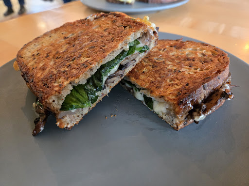 From what locals tell me, there’s not much love for the “new” wave of boutique-style bakeries popping up across the state. Red Hen feels like the kind of place they’d defend to the end. No minimalist interiors, just an old wooden barn-looking space that’s been doing its thing for years. By the time we got there around 10 a.m., a couple of sandwiches were already sold out, so we went with the Mushroom Toastie, Breakfast Sandwich, and an Almond Croissant.