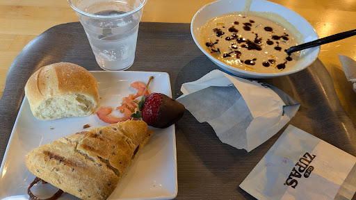 Read moreCafe Zupas is one of my favorite places to eat, and they have super yummy food, so I’m very disappointed with my experience today. I ordered curbside in advance knowing they’d probably be busy. 20 minutes after my order was supposed to come out it still hadn’t, so I called the store to make sure it hadn’t gotten lost and was still being made. The lady who answered the phone was rude and short with me, which was unfortunate considering I was very polite. Eventually my order came out and there was no drink with it, even though I had ordered a large flavor of one of their infusions. I tried to tell the man this and he said he didn’t speak English. While getting the receipt to show him what was missing I found an empty cup in my order bag, and ended up having to go inside to find out that they were completely out of the infusions. What I’m having a hard time understanding is why you would send someone who does not speak English, to no fault of his own, out with an order that has an issue or something that needs to be changed and throw an empty cup in the bag instead of offering another drink or a refund on that item. I’m not sure what they expected me to do next with the empty cup but it should not be the customer’s responsibility to problem solve when you’re out of something, especially on a curbside order. I was also missing the complimentary roll with my soup and my food was cold, but at this point I just wanted to get home. As someone who used to work in food service I understand that things get crazy and busy, but I’m very disappointed in the lack of customer service and it will be awhile...