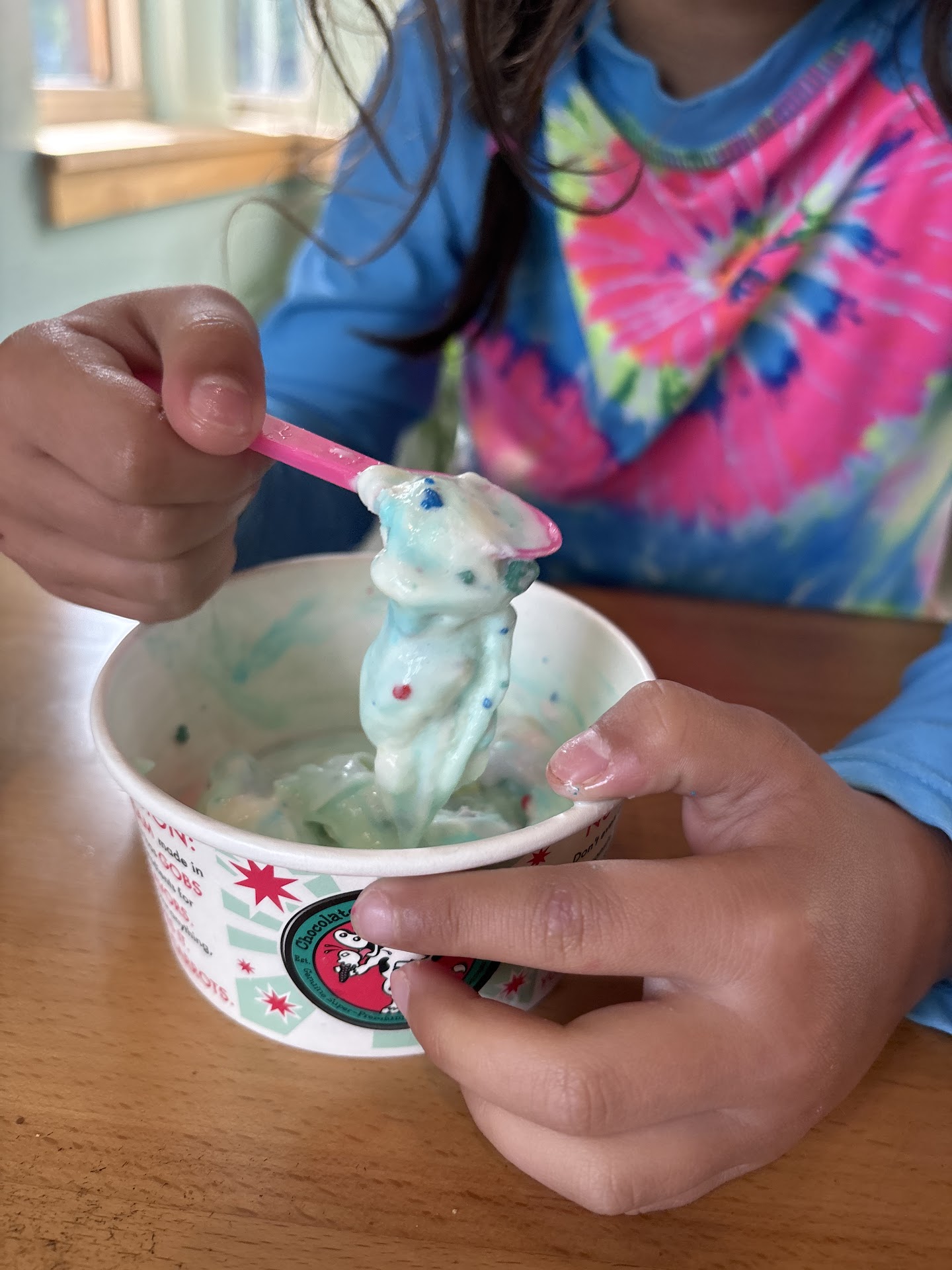 Also, a few tips for the guy behind the counter- don’t make us feel rushed and unwelcome when making a flavor decision. It’s not like you’re on a salary. Also if my kid asks for cotton candy - PLEASE scoop it so it’s half blue and half pink. Obviously that’s why a 3.5 yr old chose it. And when she throws a fit, don’t act inconvenienced when I pause my order to calm her down...