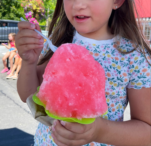 Situated along Main St. in Middleton, it has a small parking lot and is located across from a park with a water feature designed to get you wet. You order from outside and there are tables with umbrellas to seating.