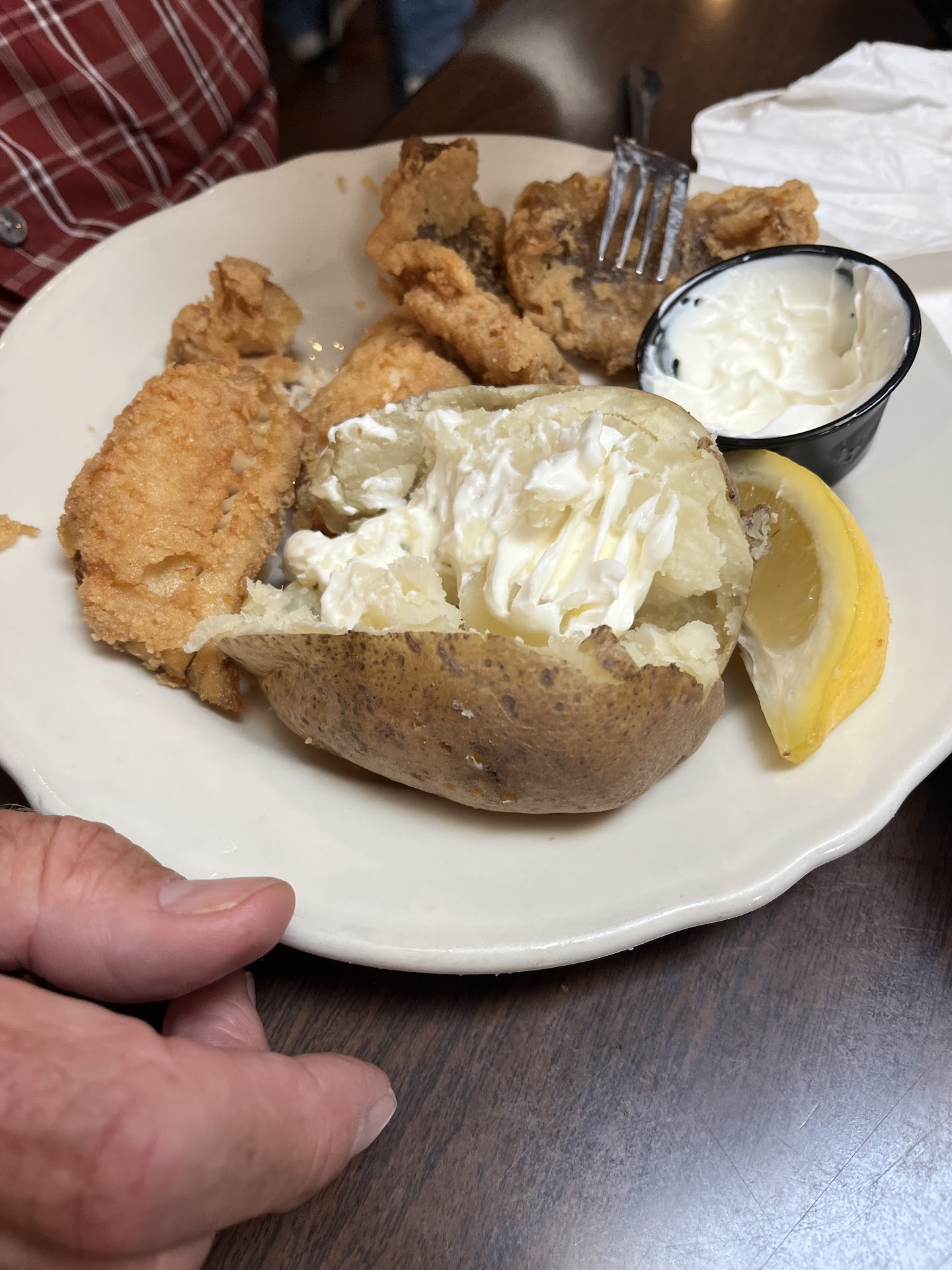 Read moreFish Fry Friday. Busy place. Even though not all the eating tables were filled, they told us there was about a 40 minute wait. We found seats at the bar and found we could order there too. The kitchen appears very efficient with getting out all the orders. There were lots of take out boxes! The eating area hosts were not at all friendly, warm or welcoming. The main one treated us like we were a bother. Glad we decided to eat at the bar. The gals behind the bar were better than the others but I wouldn't say they engage the customer either. The young man behind the bar was great -asked How things were going, smiled as he served, was constantly watching the bar and providing drinks, and talking with folks. Food was mediocre. The regular fries terrible, no color no flavor. The Cajun fries were better. The baked cod was great! I would only have that next time. Fried perch was okay. The fried cod was okay. I liked the light coating. I liked that there wasn't a greasy mess on the plate. The restrooms are clean but small. Overall, it was...