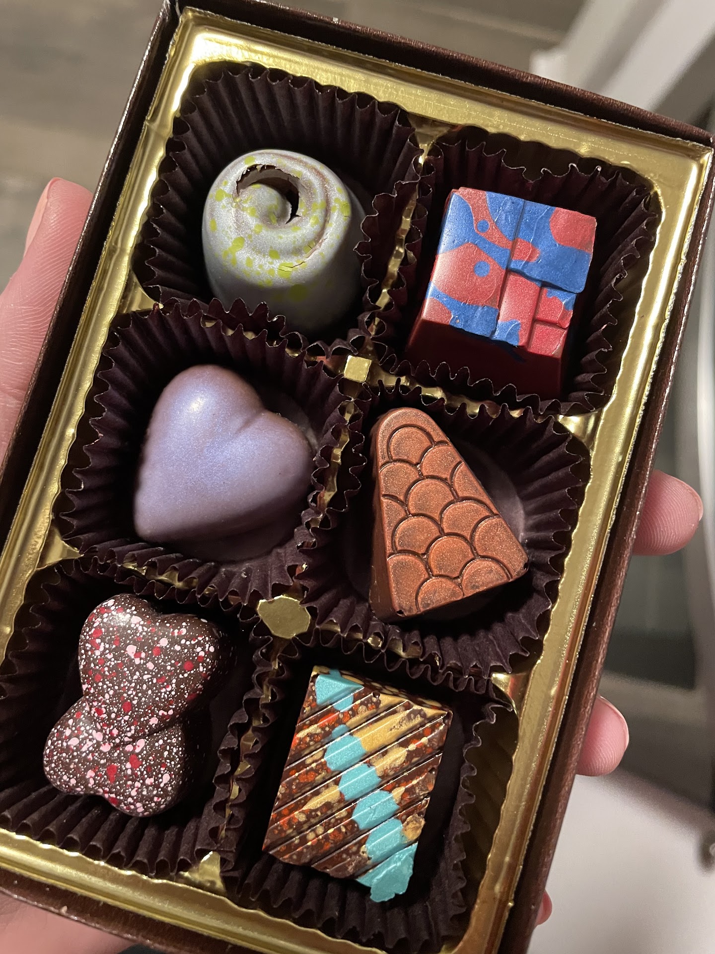 I have had nothing but stellar experience from them. The quality and varieties of the chocolates has made my extended family big fans with the vegan and boozy options similarly well-received. Even during the busy Christmas times when you can tell they're busier than usual they're still willing to talk/update their customers to keep up to date on larger orders.