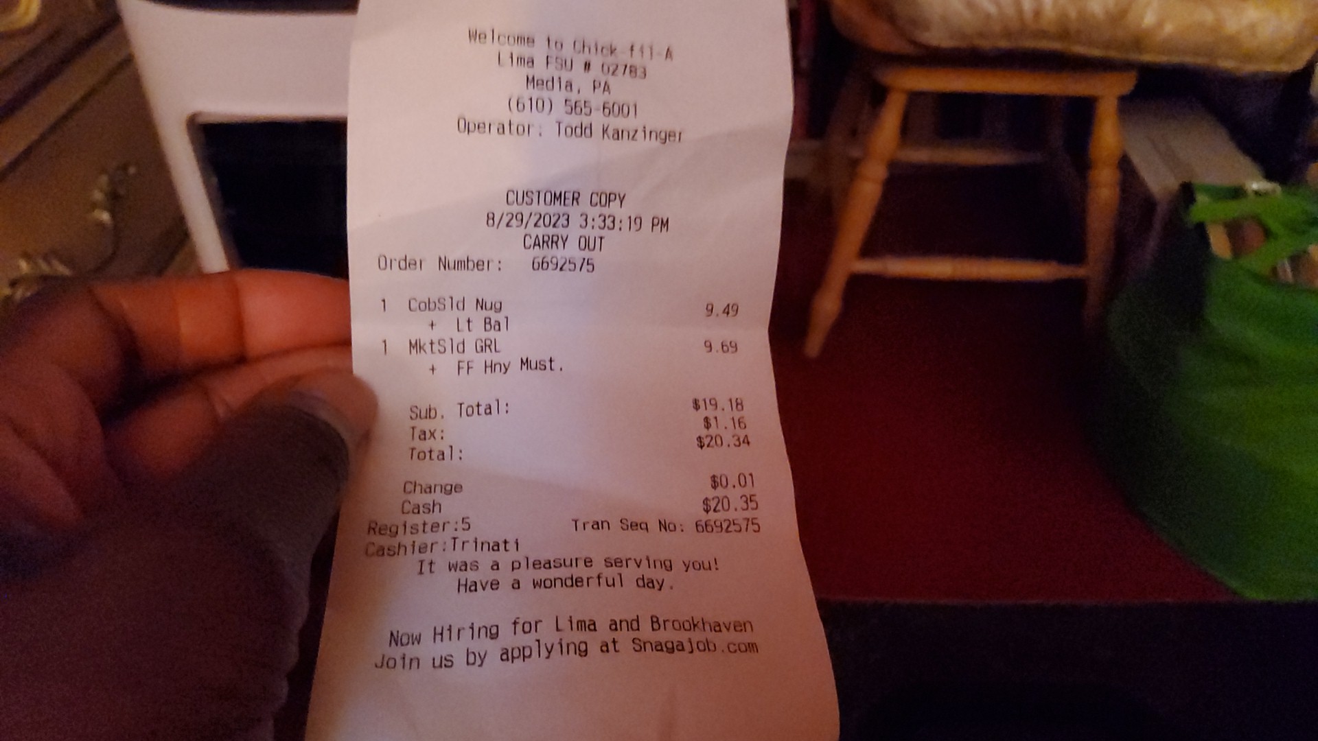 Read moreI go to this Chick Fil A probably twice a month to get the Market Salad. Most times its great. Fresh ingredients & nicely made. However the past few salads I've gotten have been sloppily made & quite light on ingredients. I typically do not call to report this, giving them the benefit of the doubt that they're busy or possibly short staffed. These salads are not cheap. Today I ordered my Market Salad & the Cobb Salad as well as 2 sandwiches. The Cobb Salad was sloppily made, eggs not fully cut, the market salad too was sloppily made, apples left in large uncut chunks, strawberries not their freshest, lettuce wilted & looked as though it was only filled half way with the usual ingredients. This time I called as the staff should be aware. The manager Colin was kind, professional and apologetic. I trust that they will get it to & be more aware of the quality of the products they are serving. On a positive note, the staff are always super friendly & the service is...