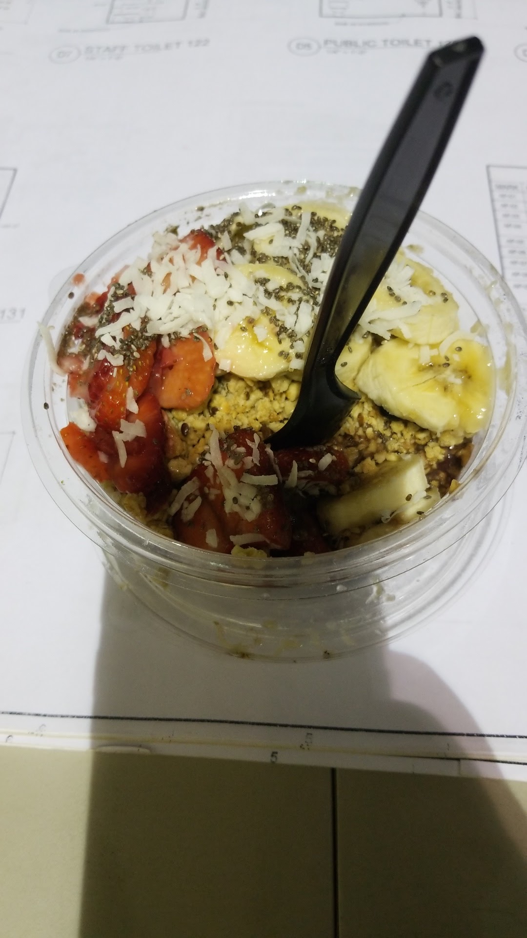 Read moreI didn't care for it too much. maybe I would enjoy it more if I weren't accustomed to Playa Bowls. Frutta Bowls doesn't have very good peanut butter in my opinion, food quality not as high, and mixes a lot of extra stuff into the bases. I personally prefer simpler bases because you can better taste what it is and it's healthier that way. Too much going in each bowl for them to stand on their own in my opinion. I also couldn't understand why the Frutta Bowl with peanut butter AND Nutella AND a whole bunch of fruits was cheaper than the PB&J Bowl which only had blueberries and peanut butter on top. (I'm sure there's a reason but it bothered me...