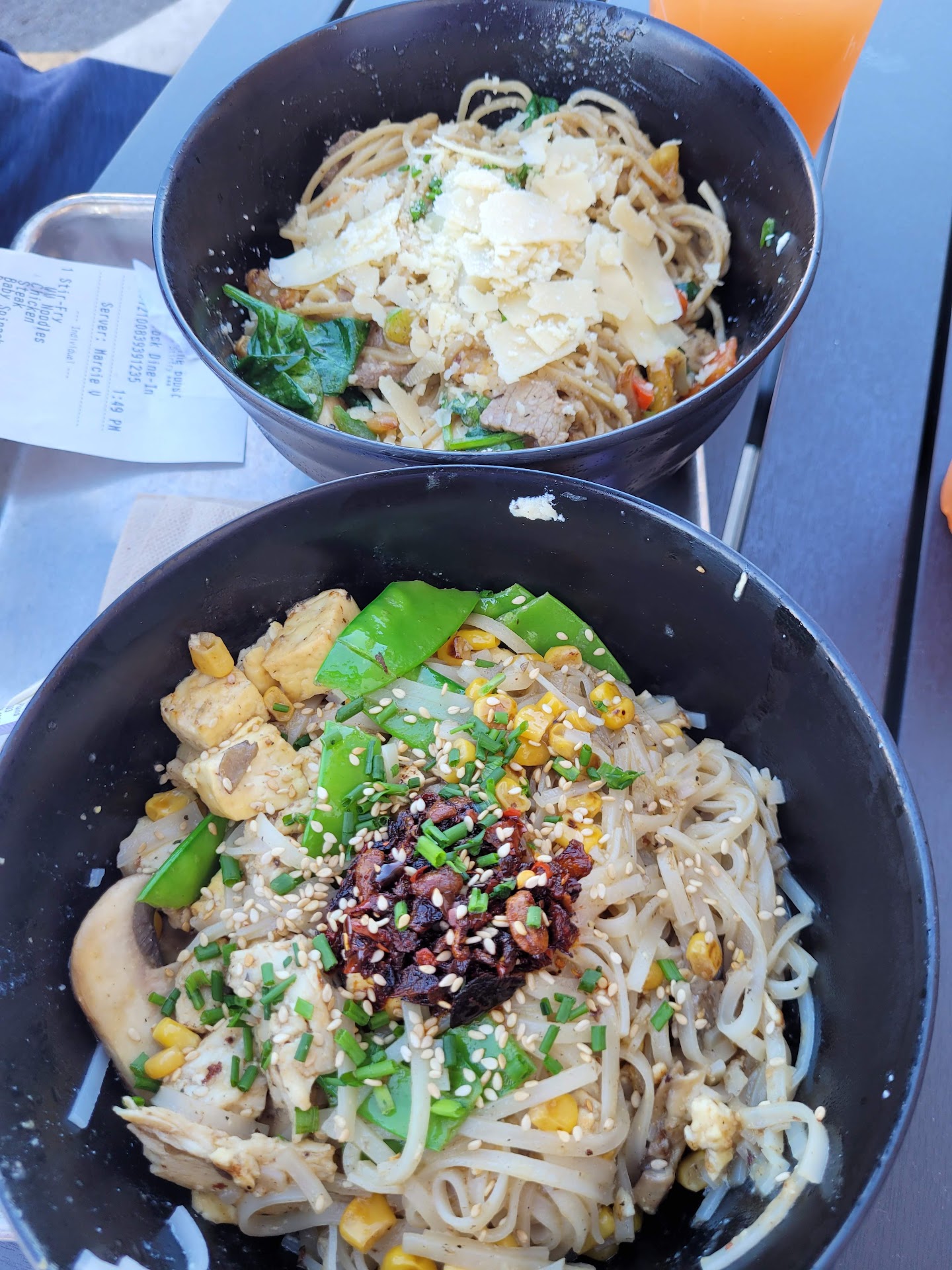 I had never heard of this place, but a friend of mine recommended that I try it. She warned me that my meal would be about $15, but then it was totally worth it. She was right! I was greeted as soon as I walked in the front door, and parking was a breeze since there's a huge lot right outside. You can order at a touch screen. There's so many choices and I didn't feel rushed or pressured while taking my time. Looking through what I wanted to put into my meal. You can start with a base of salad or a base of noodles and I decided to try the noodles. My favorite addition was absolutely the candied pecans!!! You just don't see that everywhere, and I thought it was a great touch. I was getting this order to go, and it was ready in just a couple of minutes in a bag and boxed in the cutest little Chinese takeout carton. I got home, opened it up and was so pleasantly surprised by the smell and the taste of it. I'm already looking forward to going back and trying another meal with a salad base. They also sent me a text confirmation with a little joke when I put my order in and then another text confirmation with the answer when I received my order. After I got home I also received a $3 coupon as a discount for my next meal. I was super impressed with this place, and will absolutely go back and try other items...