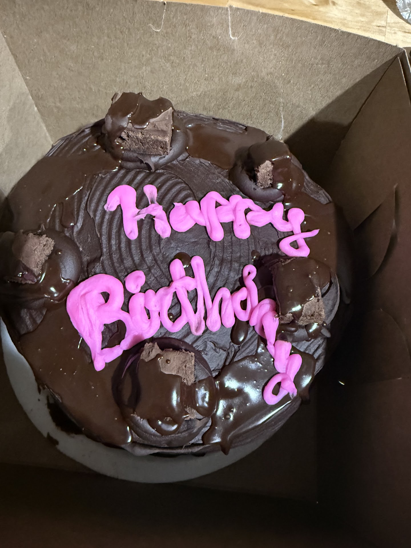 I live local and really wanted to get my mom who lives in Virginia a birthday cake. Everyone recommended here. I went and got 2 chocolate cakes and she asked if I wanted it to say anything , what I wanted it to say and what color. I said happy birthday in pink. No big deal, something simple and everyone does. I did not look at the cake because I figured it was a pretty basic thing and she originally asked me if I wanted to write something. I don’t know how she thought this was acceptable? You can’t even read what it says, and it is obviously very sloppy. It is embarrassing to bring someone a cake and it looks like this. To add to it, it wasn’t even one of the cakes. It was both of them. I will definitely not buy any kind of cake from here again, and if you are going to buy a cake, make sure you look at it before you leave the store. The only thing that saved this from being a 1 is that at least the cake Tasted like it was suppose to , a double chocolate cake. Very...