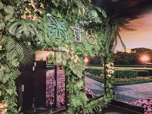 Read moreThis Brazilian steakhouse is classy, sleek, minimalistic, and high end with all-black decor, perfect for formal dinners. The music is not too noticeable - it's very quiet and calm with a bit of an elevator music sound to it. Decor-wise, there are no paintings or kitsch, besides one giant abstract black and white wave in one corner. There are some pots with fake plants here and there. The bar area has hanging calla lilies, which is quite creative, and the salad bar is decorated with lots of green plants and a beautiful accent from the red poinsettias.