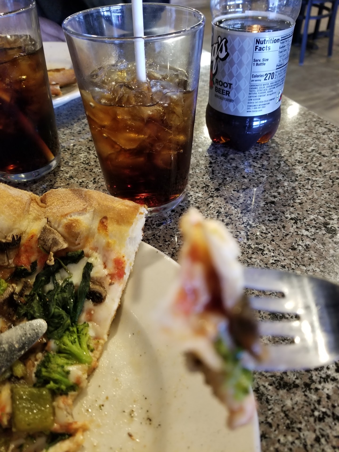 And my veggie pizza must have been color-coded because it only has GREEN veggies on it.