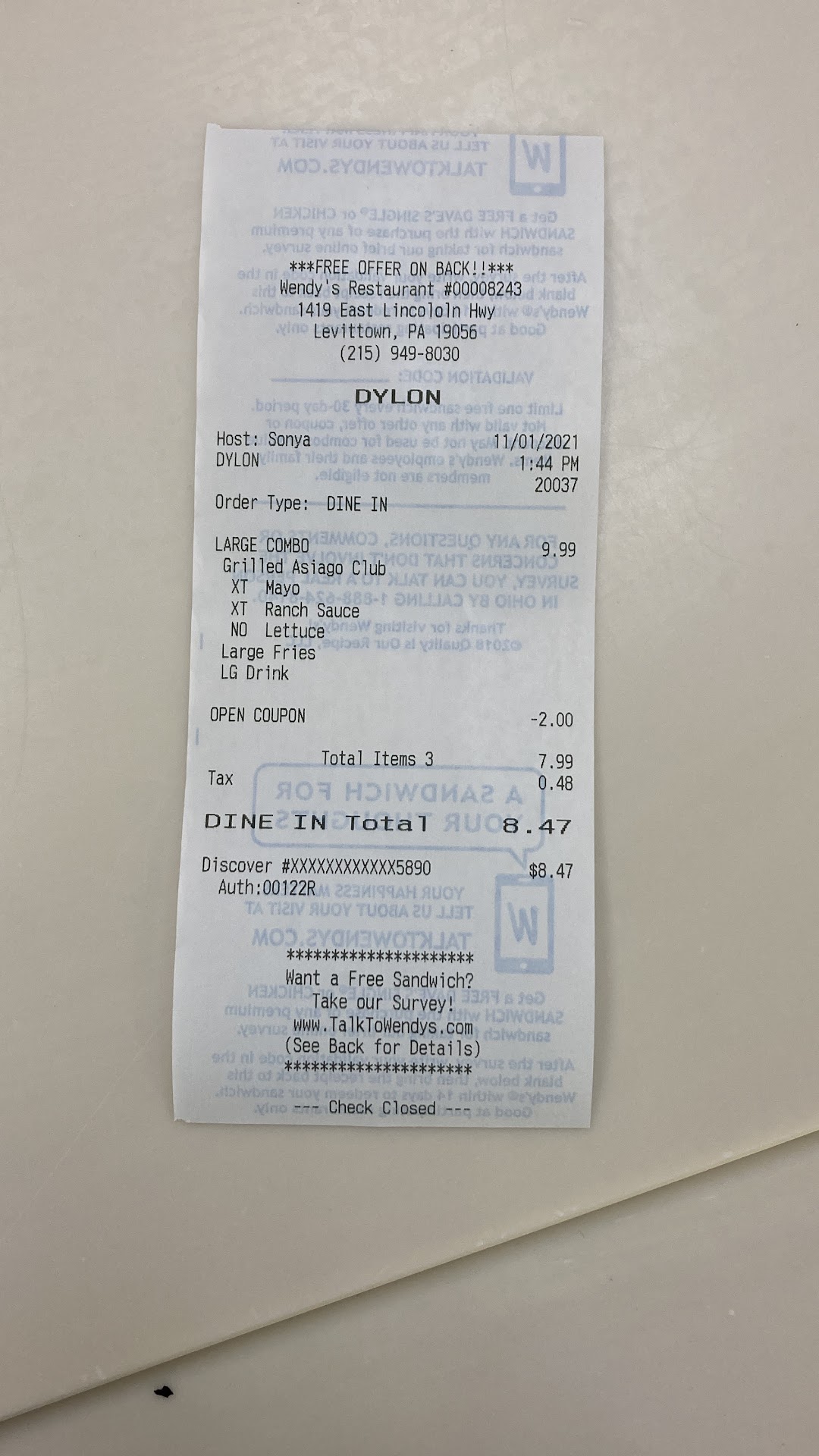 Read moreI was here on Friday 06/07/2019 around 9 pm. The place was in total meltdown and complete chaos. It took about 15-20 minutes to get my order as well as the other people waiting along side me. The very tall kid taking the orders was doing his best, but there was absolutely no communication among staff. Orders were repeatedly being screwed up, including mine. I asked for no cheese on the Chicken BLT and it came with cheese. Staff were arguing with one another. People from the drive through were coming in to correct their orders. The eyeopening experience was when one of the girls with bare hands reached down to pick up garbage and papers off the floor, and then continued to tend to the fries without washing her hands. That occurred between 9:03 pm- 9:04 pm. I have been coming to this place for over a year and it has gone downhill. It wasn't great last year, but it was better. I love Wendy's, but this location is not a good representation of the quality you would expect...