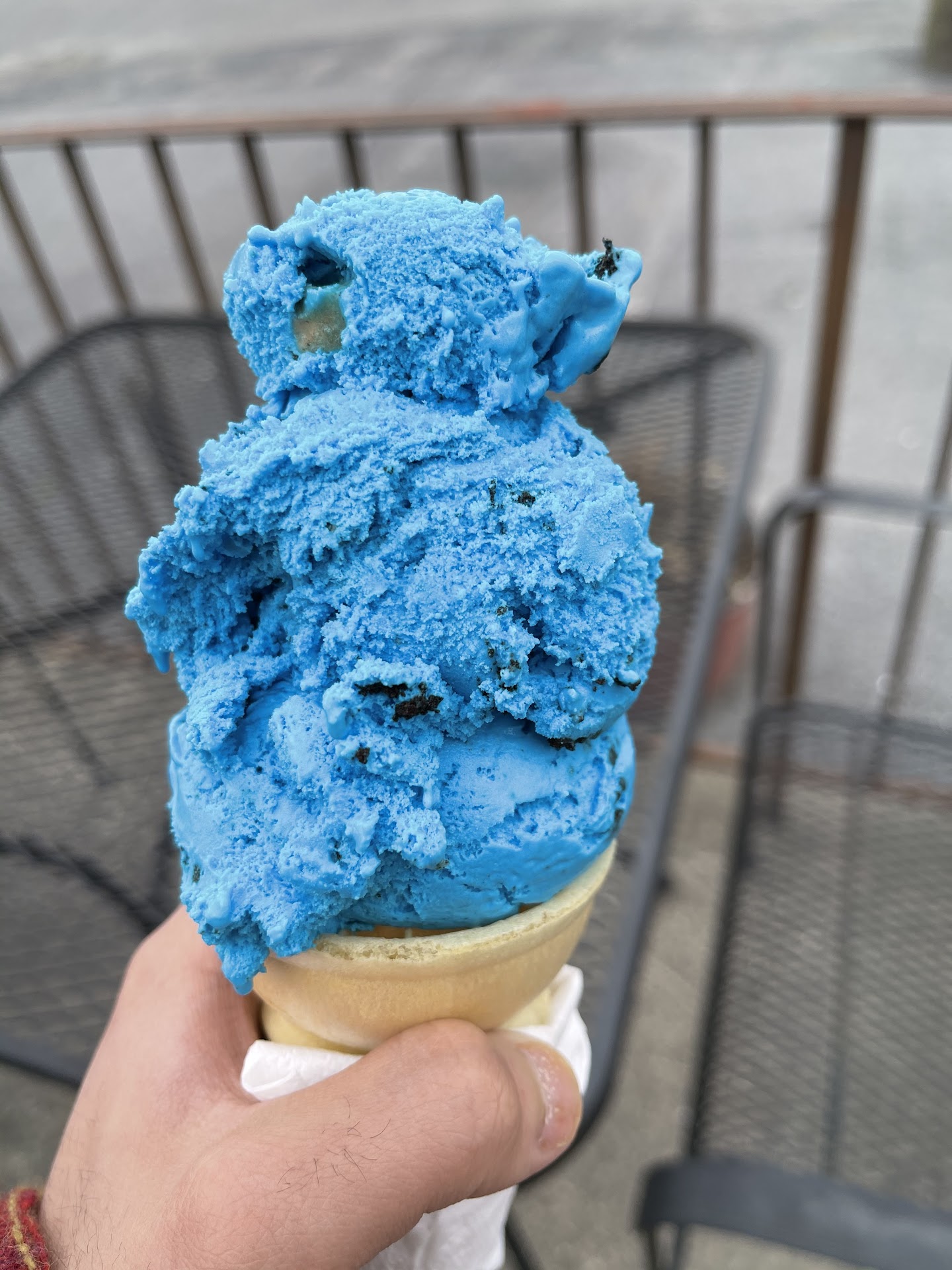 Nice little roadside ice cream stop. The girls working the counter are pleasant and efficient. The portions are rather large. A small is more like a medium in most places. I ordered the Cookie Monster ice cream. It is served infused with Oreo cookies for a tasty treat. The texture delights the palate with sweet and superbly delicious flavor. Now here is the down side to this dairy delight. The blue dye used to give its cleaver little name of the Cookie Monster, is overwhelmingly blue. Your lips and tongue will turn blue as babe the ox and most disturbingly your bathroom visits for the next five to seven days will paint the bowl with a beautiful hue of turquoise. One could only imagine the magical blend of colors creating an artistic landscape in your large intestine. Depending on your placement in your ceramic canvas, you can rival Vincent Van Gogh’s best work. I give it a four star but caution you when eating the...