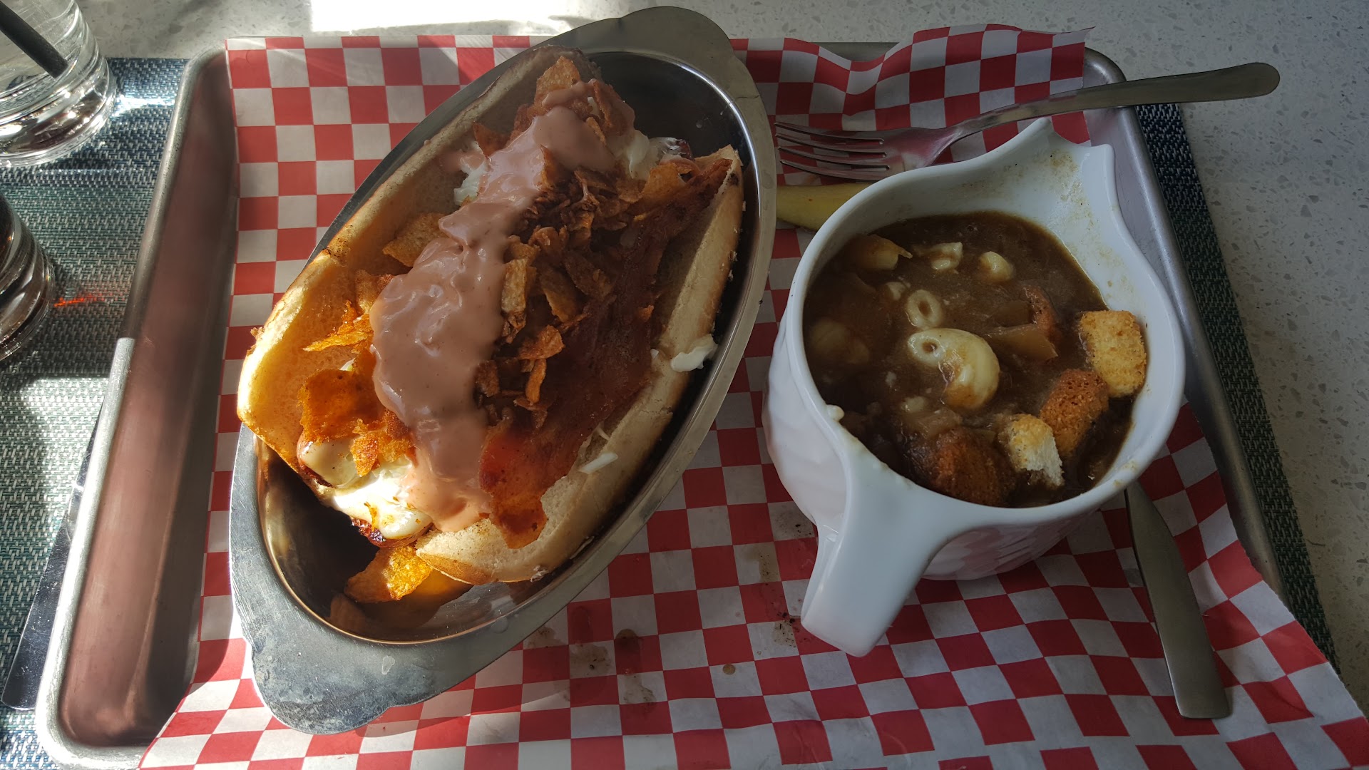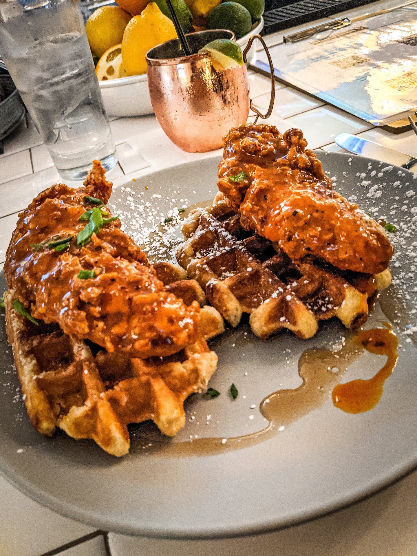 For lunch, I had the Grippo's sandwich with hand-breaded chicken. This was topped with muenster cheese, fancy sauce, creamy coleslaw, crushed Grippo's chips, and smoked bacon ($15.50). Sweet potato waffle fries are a $4 addition but are well worth it. This sandwich is typically served as a steak burger, but chicken can be subbed or an impossible burger. This was delicious and the spicy from the Grippo's chips really stood out.