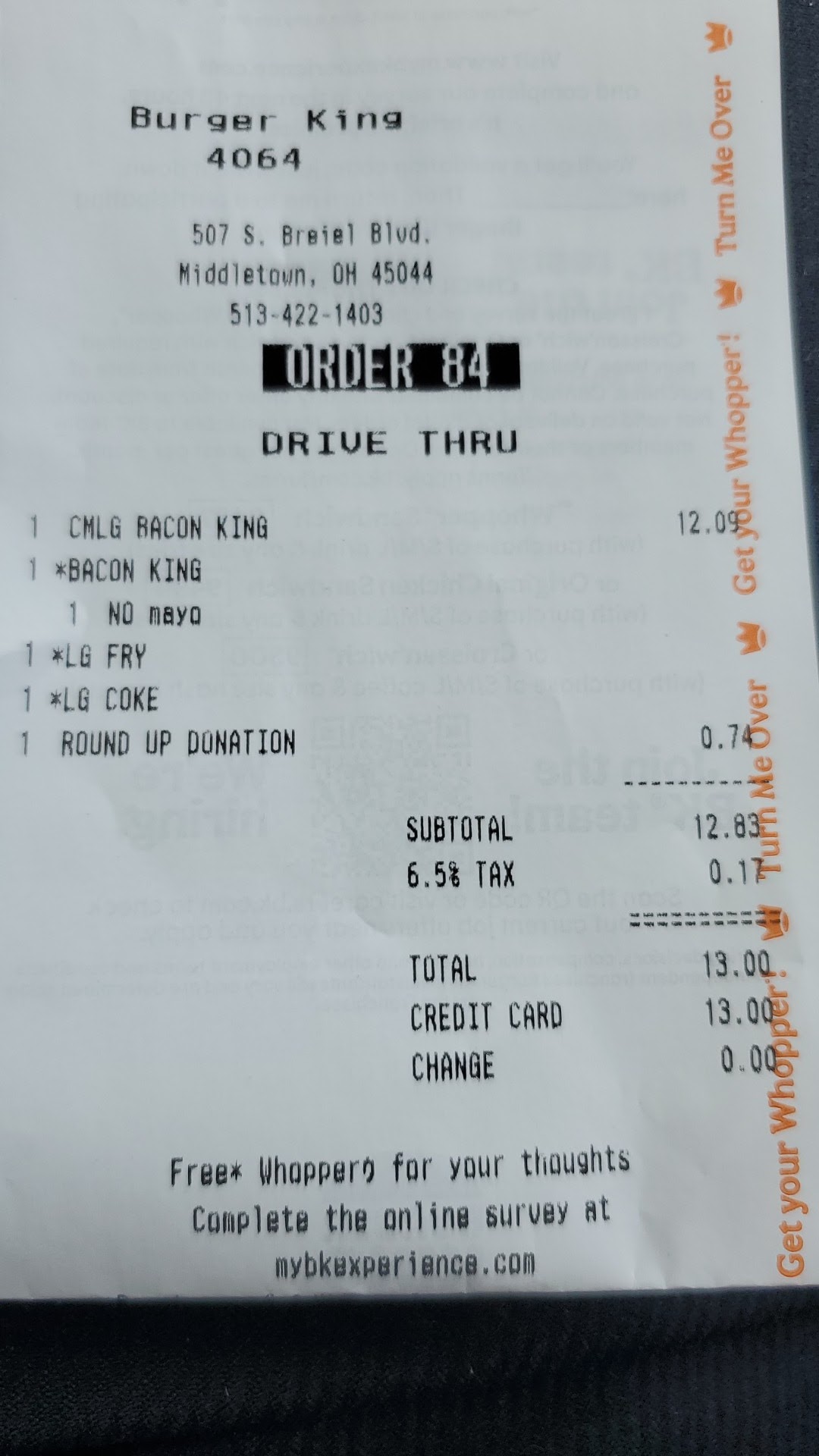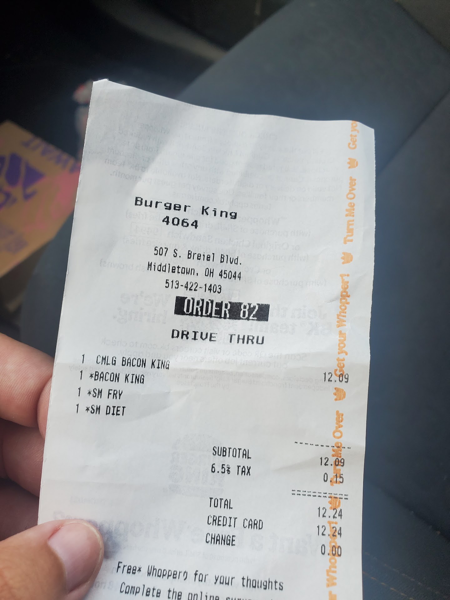 Read moreSo I just got my food from this burger King location. I wasn't too thrilled with the order accuracy. I had to yell into their seemingly old and broken speaker and I requested a large meal, which I've repeated myself several times as kindly as I could so that way I thought they would get the order correct. And what happens? They give me a small meal and a few wrong items instead. This frustrated me because I just got done working a lot going 12 hour shift and I've repeated myself several times to help the accuracy of the order. So at the window, I go on to let them know that it's wrong, I show them the receipt and surprise, the receipt shows up all the wrong items. So I just gave them the stuff back and requested a refund. Then the manager stepped in and gave me the stuff I wanted at first. Look, the workers are nice, I'm sure they are tired from the long hours they have to work, but that broken speaker? Inexcusable on management's part. I won't go to this location again until they fix this. If anyone goes to this link, I strongly suggest you go inside to make your order for accuracy. Don't use the drive through because I found this experience to be a headache. 4 times now. If management reads this, don't take this poor review out on your workers, please just fix...