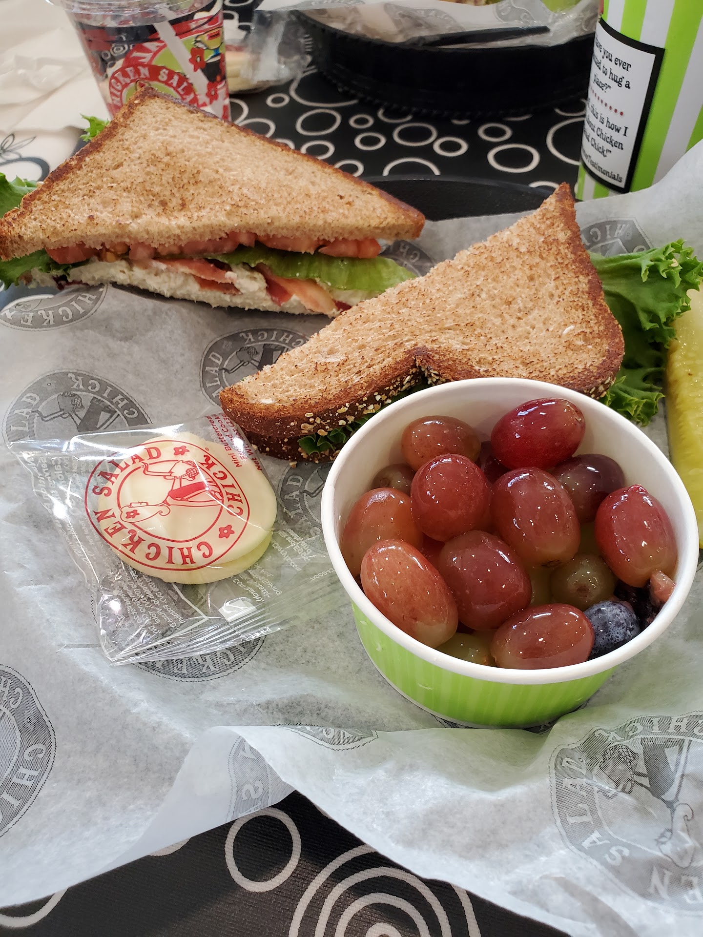 Once inside the décor is like the other locations we've been to. We don't frequent Chicken Salad Chick often enough to have a favorite, so we look at the menu board. I usually go to the Jalapeño Holly sandwich "toasted" on white bread. My wife gets a scoop of whatever sounds good at the time. This time I opted for mac-and-cheese as my side.