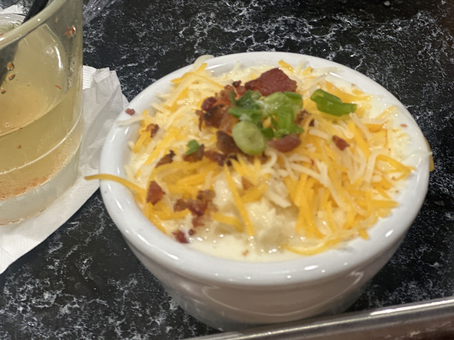 My companion chose the Southwest egg rolls as their main course and was pleased. I chose the Bacon Cheeseburger and was also pleased, thinking it compared favorably to a Red Robin bacon cheeseburger.