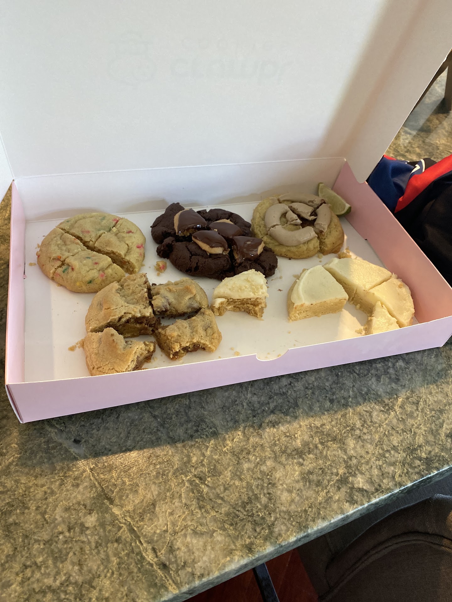 Read moreLess than thrilled unfortunately. Was looking forward to this "new to Louisville" sweet treats company. I deliver goodies to clients often and love to send new things. Being that we still live in a pandemic, I make sure everything is individually wrapped prior to taking to a client. I called Crumbl this morning and was told they could be in sleeves as long as it was the chocolate chip, sugar or twix - the other cookies have toppings that may stick to the sleeve. I was ok with this! I made my order online and called BACK to make sure I put the order in correctly and mentioned the sleeves again of which I was told would be no problem. I arrive to get my cookies and am told that they can't put them in the sleeves and that I would have to do it myself...interesting being that all staff is wearing gloves. I ask how they would give me 1 cookie, of which replied in a sleeve. So again, asking why my dozen cookies couldn't be in a sleeve and then in the box. Ultimately, they would not put each cookie in a sleeve but handed me sleeves and a set of gloves to do it myself. If I would have been told from the beginning this were the case, I would not have ordered/paid online and would have gone to other companies I've used in the past. This is the first and last time I will be ordering from Crumbl Cookies both personally and...