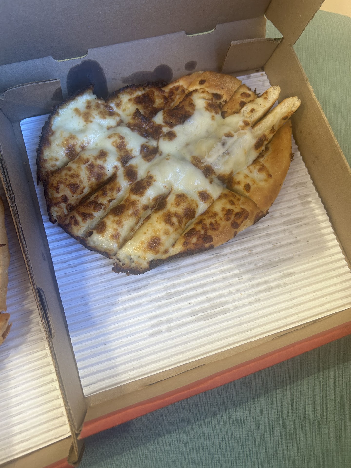 The lasagna was good but very salty, and extremely acidic and tomatoee. We didn't detect any meat in the lasagna, and the garlic toast looked like it was made with cheap hot dog buns.
