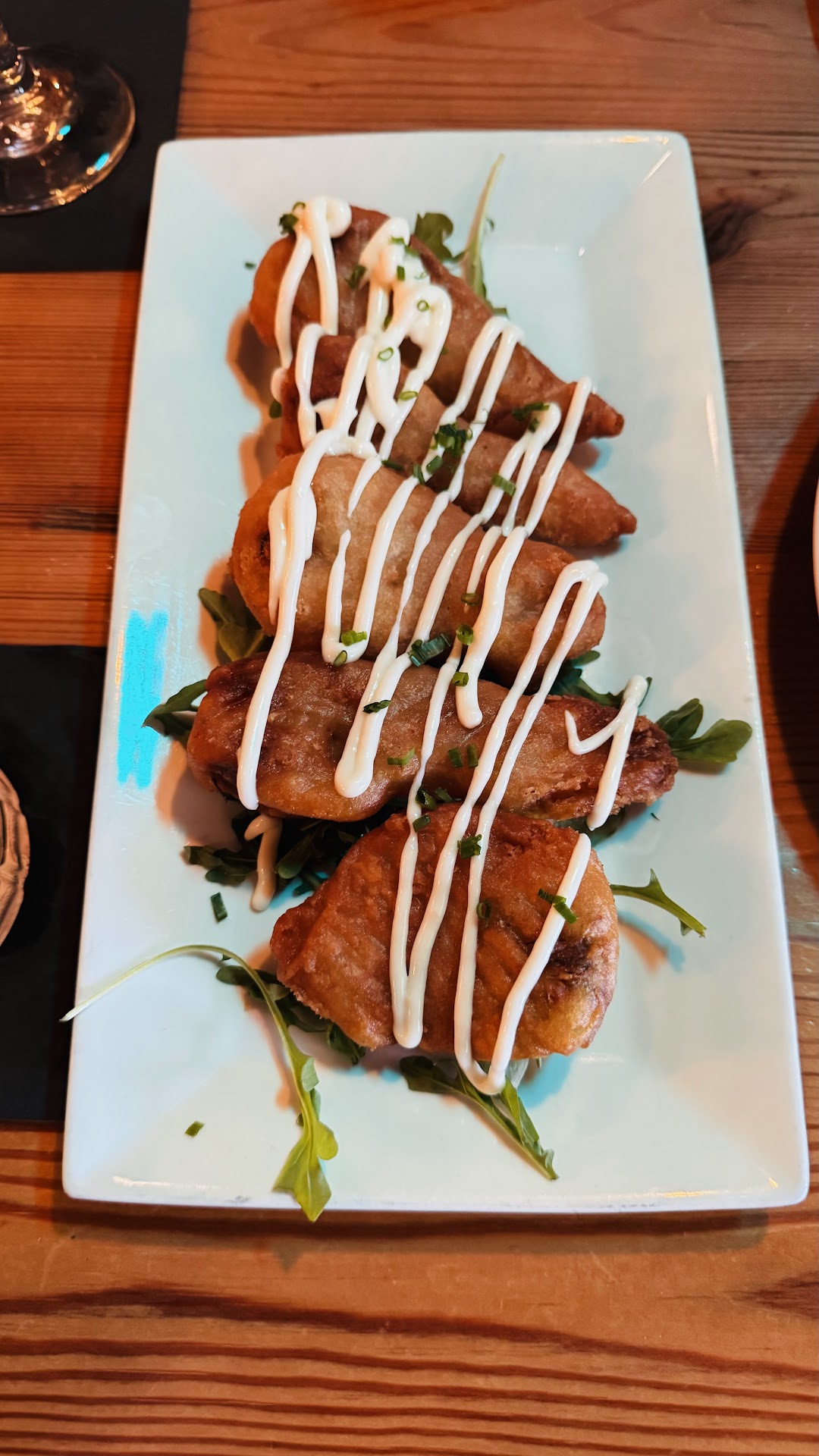 For appetizers, we got adventurous. The boneless wings came with a wild blueberry Uncle Latest sauce â and that sauce was incredible. The wings themselves? Just fine. Same for the fried squash blossoms â interesting to try, but mine had a bit of raw batter and didnât really pop. Still enjoyable, but not something Iâd order again. Appetizers? 3/5.