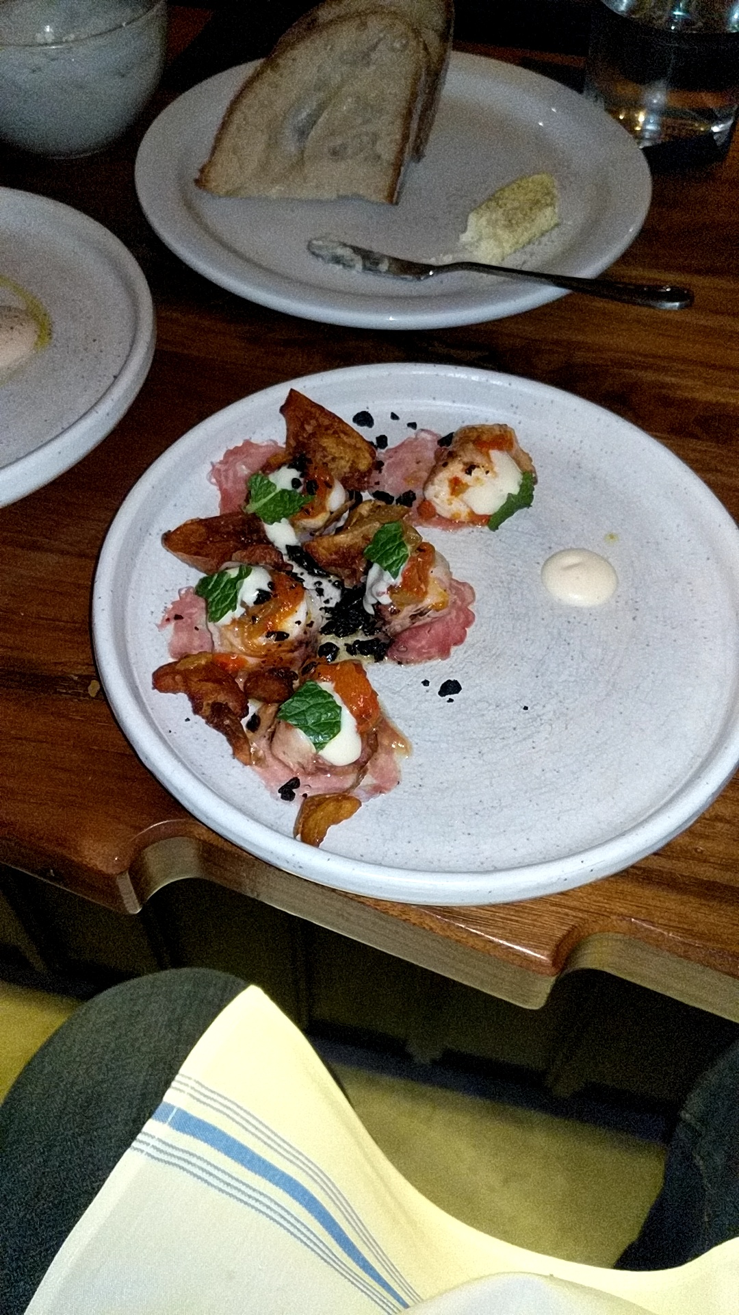 First out, the bread… Served with whipped lardo & cultured butter. It’s offered as either or but my position is, when in doubt, get both… nice crispy bread reminiscent of that wonderful bread you get on Arthur Avenue. Both the lardo and butter were delicious. Had to pick a favorite.