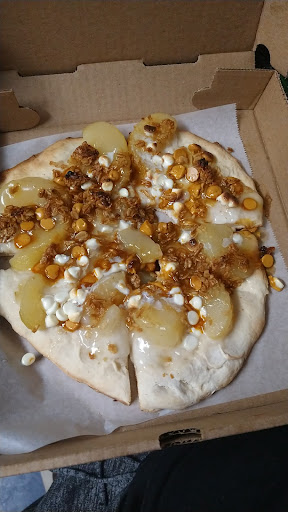 Forgive me if this is long but I want to be able to depict the entire take out experience. Well at least my experience. Called to order take out for the first time. The lady picked up and asked if I could hold. I heard over the phone she gave orders to people in person and figured she would be right with me. Nearly 6 minutes later I am still on hold and she forgot to come back to the phone and left it off the hook. I could here what was going on in the kitchen but decided to hang up and call back. After calling back 10 times (because she left the phone off the hook) I finally got through. I ordered a XL pizza half cheese half pepperoni. The pizza was filling and could have been cooked more but it was some of the best pizza Iāve had in the area. Tried to order a Caesar salad but they were all out of Caesar dressing. Instead I ordered cheese fries and they were amazing! The fries were crispy and not soggy and the nacho cheese poured on top reminded me the nachos you get at a game. Would get those again in a heartbeat. Finally we wanted an all chocolate dessert pizza but the lady told me they were all out of the all chocolate cookie crust. We opted for the chocolate chip cookie crust and it was delicious and very sweet. 40 minutes later when I went for pick up I went in the front door. I thought I went in the wrong door because I basically walked right into the kitchen! There was a small table off to the right with a register. No more than one person can go in at a time to get food because thatās how tight and small the front area was. Overall, despite having issue ordering, them not having certain items, and the slightly undercooked pizza it was still a good meal and I would go back again over other pizza places...