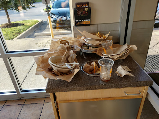 The dining room could have used a little attention (several tables needed to be cleaned up) and the drink station was a bit...drink-y. The service area behind the counter was cluttered and the food assembly line could have been wiped down. During our visit no one came out to look at the dining room, but it was in generally good shape.