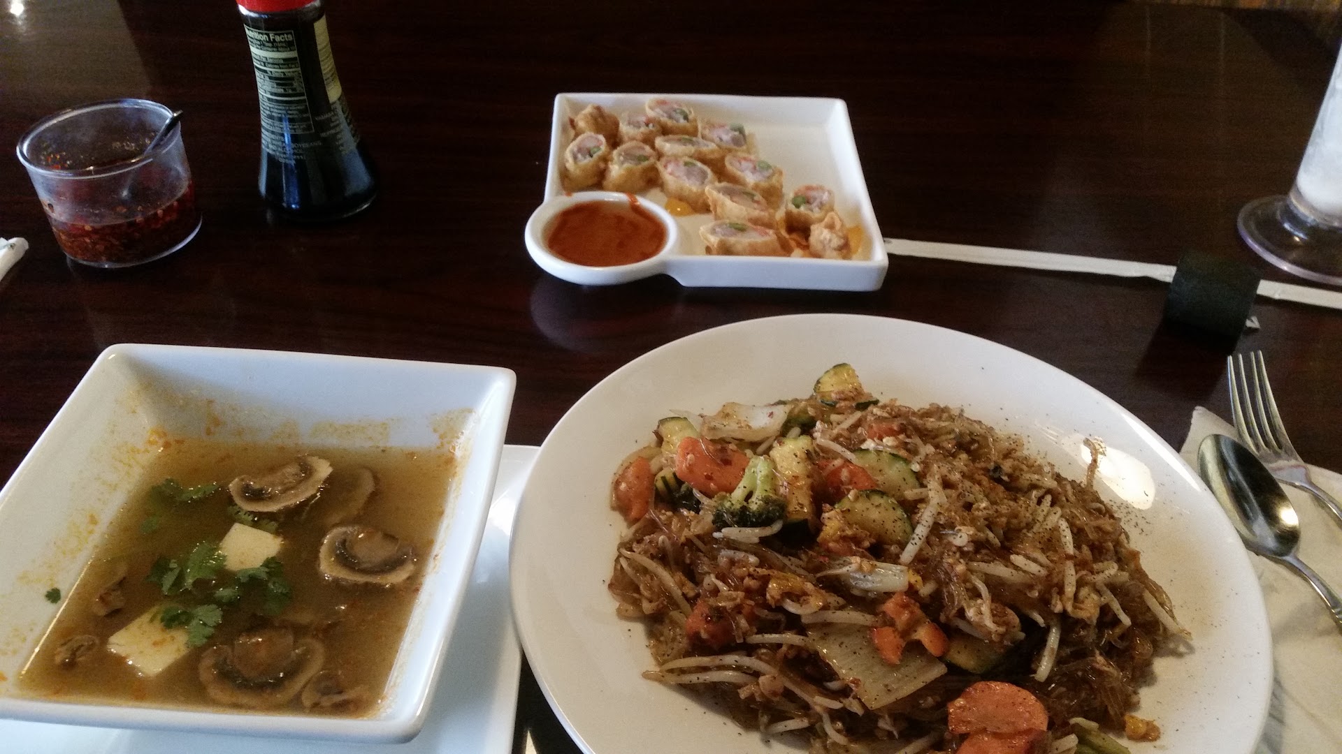 Read moreI feel compelled to share the absolute worst customer service experience I have had in Louisville since moving to the city 5 years ago. I was desperately in the mood for Thai yesterday so my husband took me to our favorite in town. We got there early, about 6pm, and there were few tables filled. We were both really hungry so we ordered 2 appetizers and then ordered our entrees at the same time. The appetizers took almost a half hour to come out. While small, they were delicious and $1 off with Happy Hour pricing. My husband had a soda and I had iced tea, which the waitress refilled one time in an hour for my husband. He sat with an empty drink for over a half hour. The waitress never cleared the appetizer plates and we sat staring at them for a while and then realized we had waited over an hour for our entrees, which never came. Our waitress kept saying “It’ll be out soon” but after an hour, we’d had enough. We ordered classic pad Thai and the restaurant wasn’t packed.