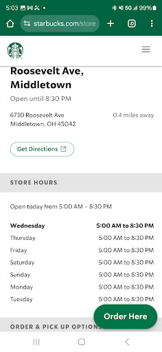 Read moreUsually don’t have any problems showed up today about 5:30 AM close to 6 AM and waited in line for about 5 to 10 minutes. Only one in line, 3 cars out front but no one answered the drive-thru so I went around to the window because cars were starting to come in behind me, and there was no one at all. I’m not sure if the time that Starbucks has on their app and google is wrong or no one was working this morning, but if the time is wrong, it needs...
