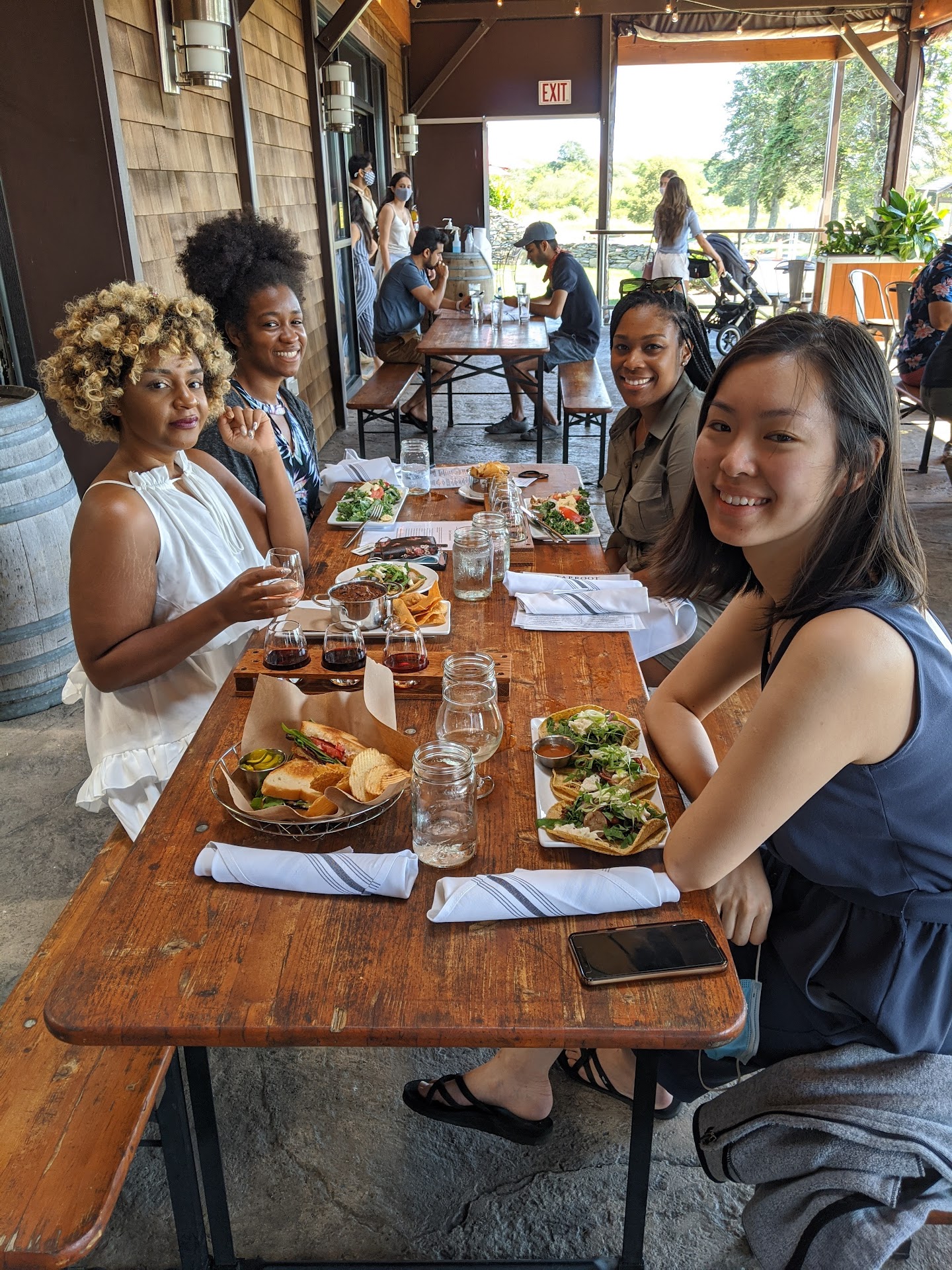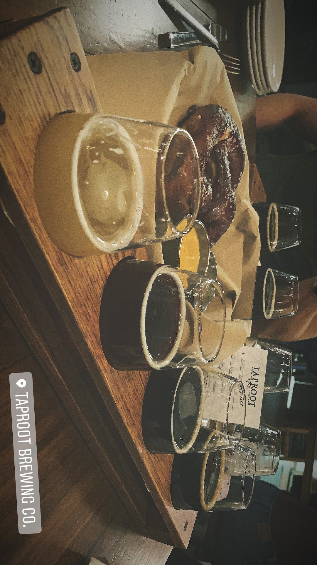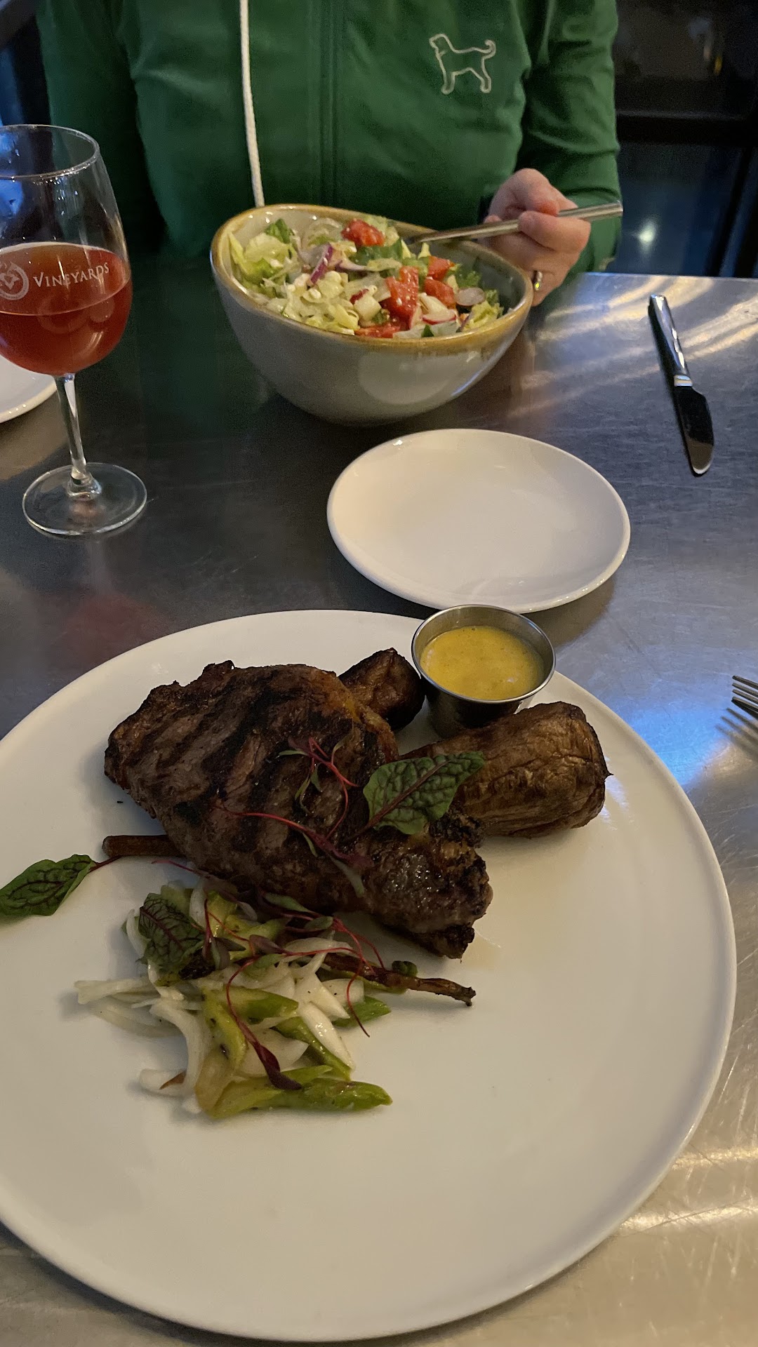 After the tasting we went to the Taproot restaurant to have a late lunch. Short wait, not too bad. This is where I wasn't totally thrilled. My wife got the BLT and loved it. My friend's wife got the burger and was thrilled it was on a Bolo and said it was delicious. He got the clam flat bread. He didn't realize it had onions and picked them off without complaint. He said it was good but was expecting more clam. I got the Ooey Gooey Grill Cheese and added tomatoes. It was neither ooey or gooey and the tomatos were end pieces so every bite they popped out the back. It was ok but I would not get it again. The other couple has been a few other times and said the winery restaurant is better but it was...